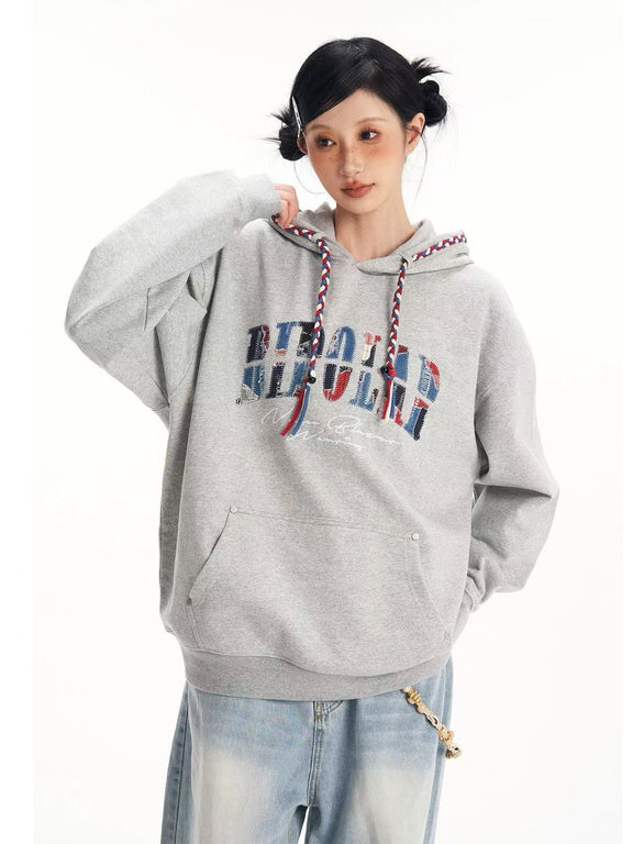 BIPOLAR Denim Patchwork Plaid Hoodie