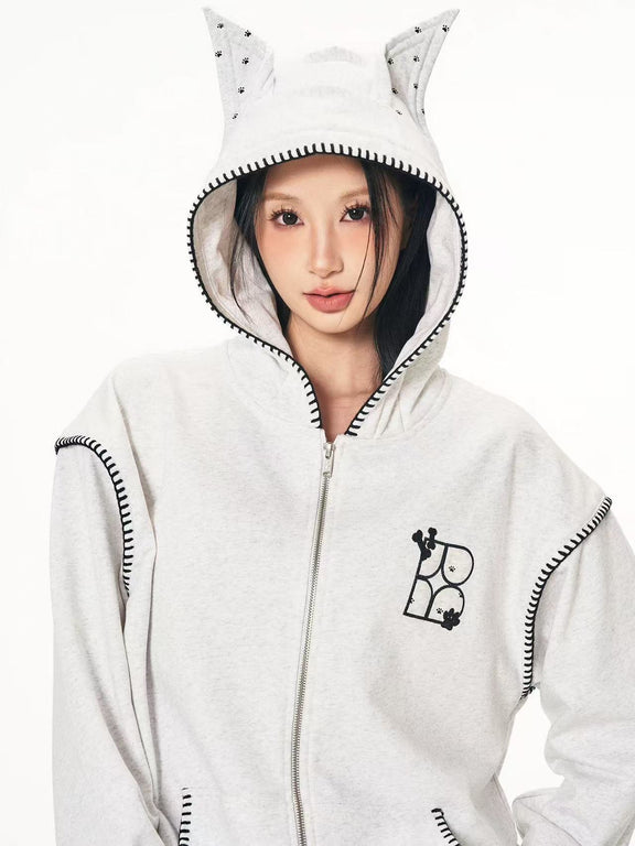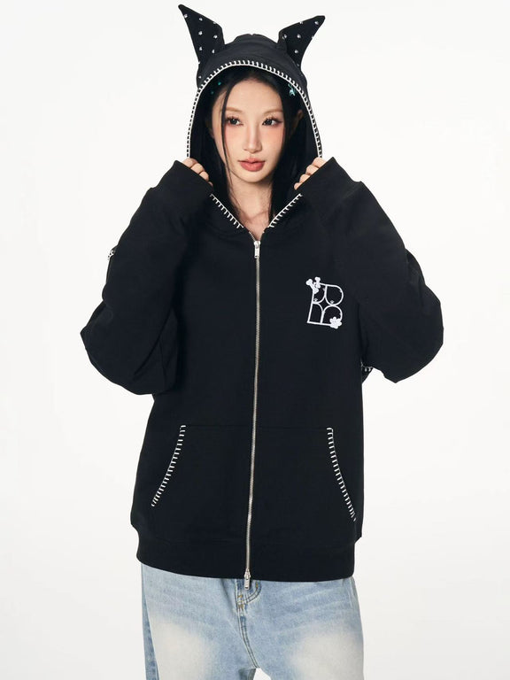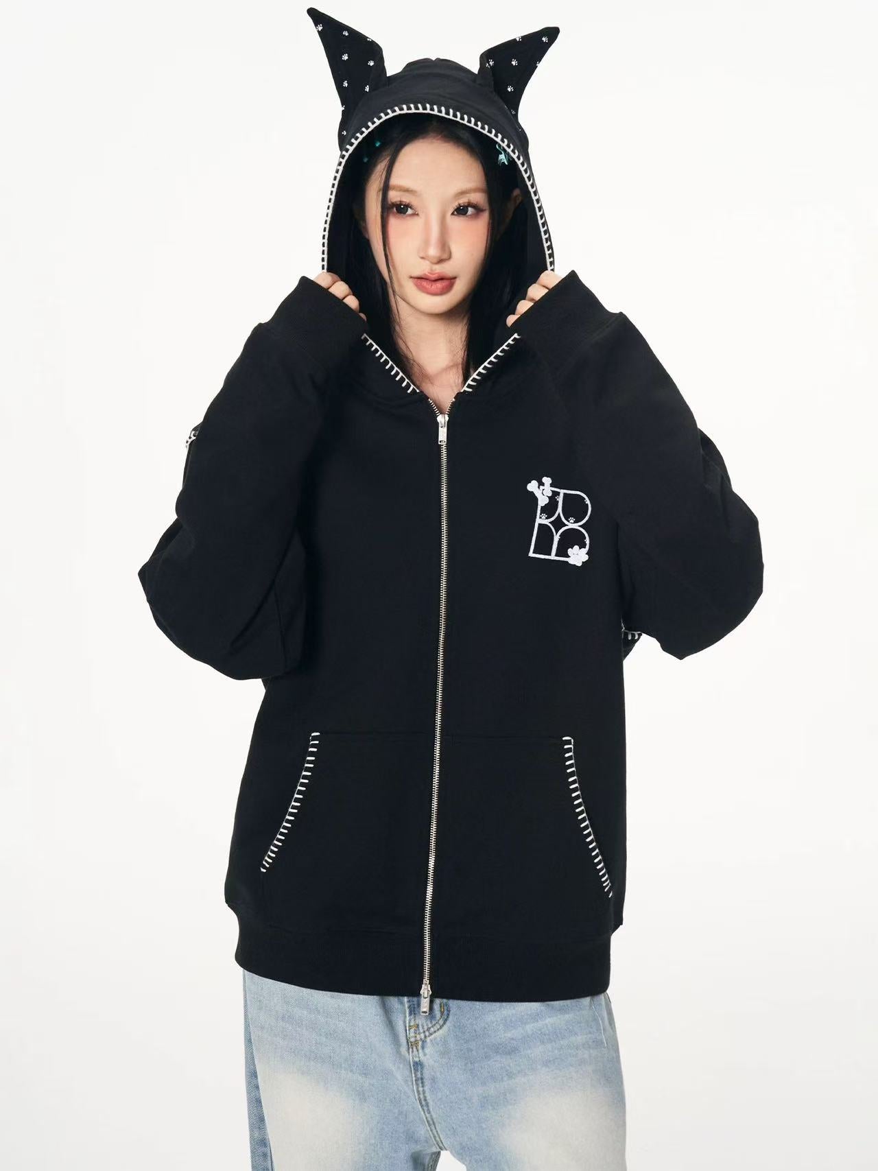 BIPOLAR Dog Ear Patch Zipper Hoodie