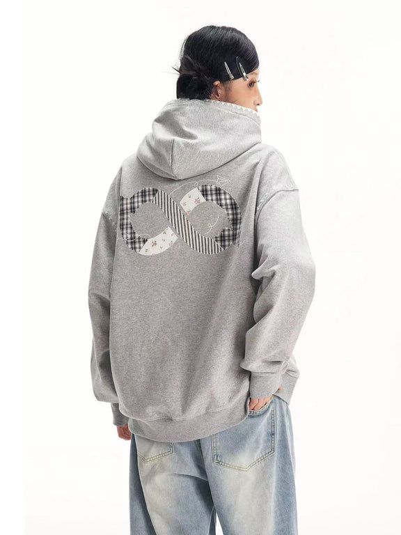 BIPOLAR Floral Striped Patchwork Shell Embroidered Hoodie