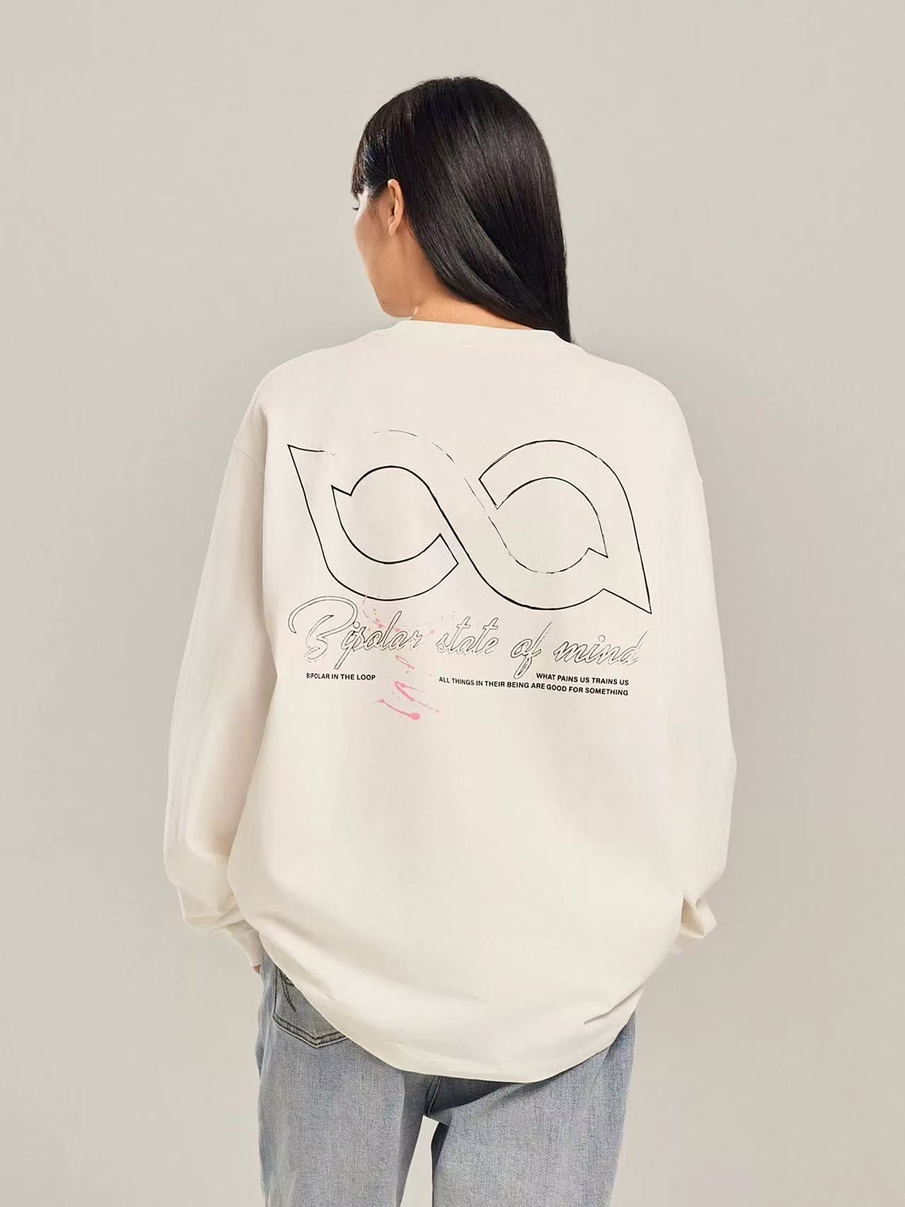 BIPOLAR Ink Print Loose Couple Long-sleeve T-shirt