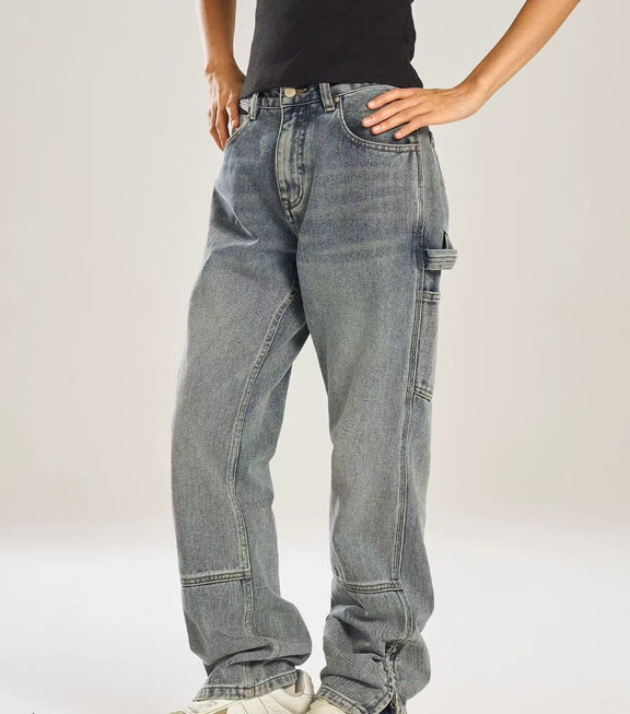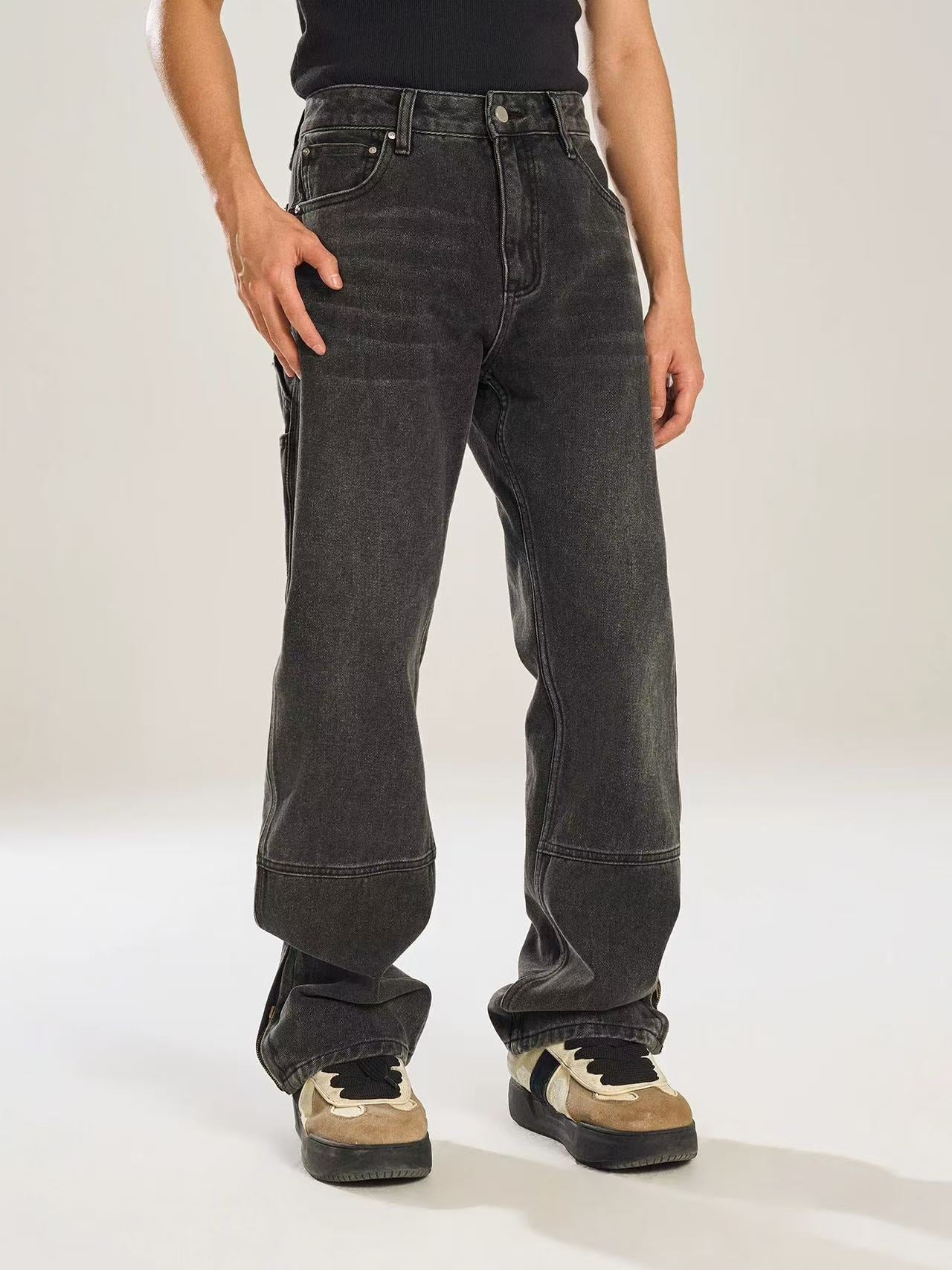 BIPOLAR Multi-pocket Wide-leg Workwear Denim Jeans