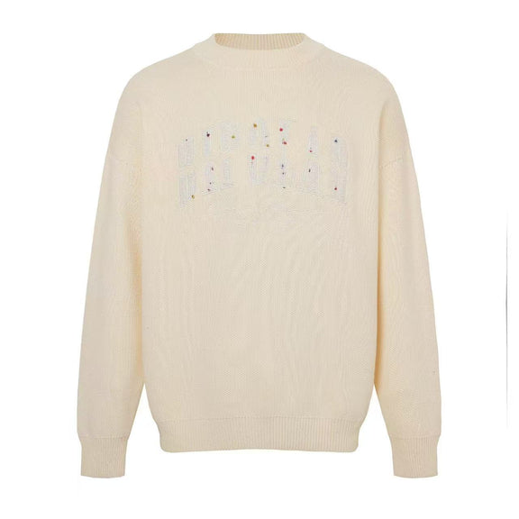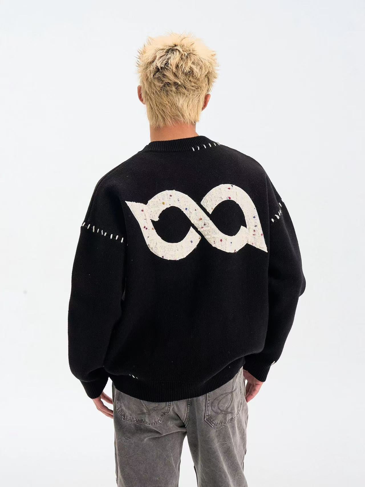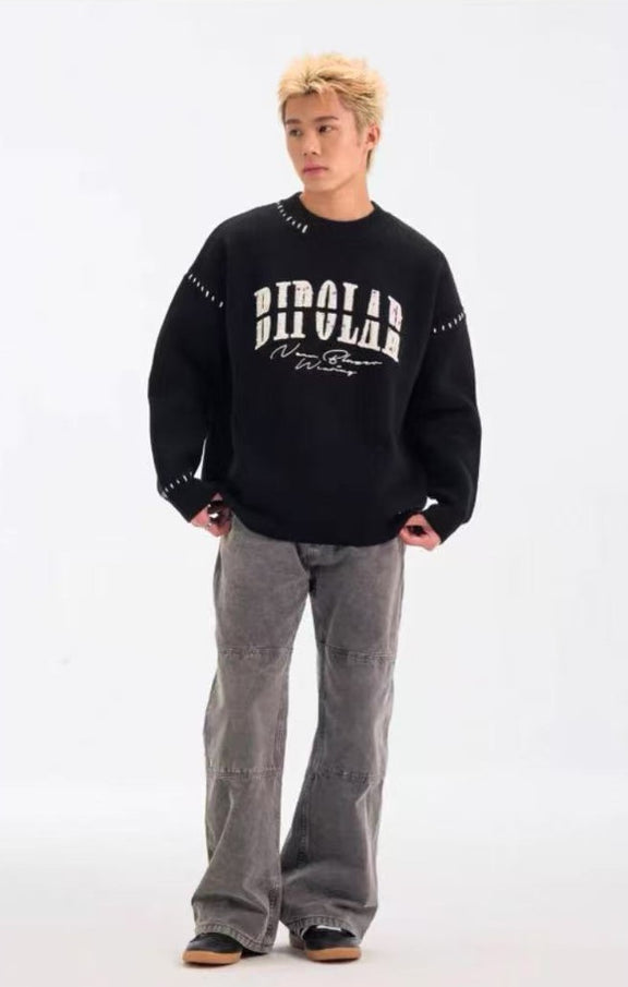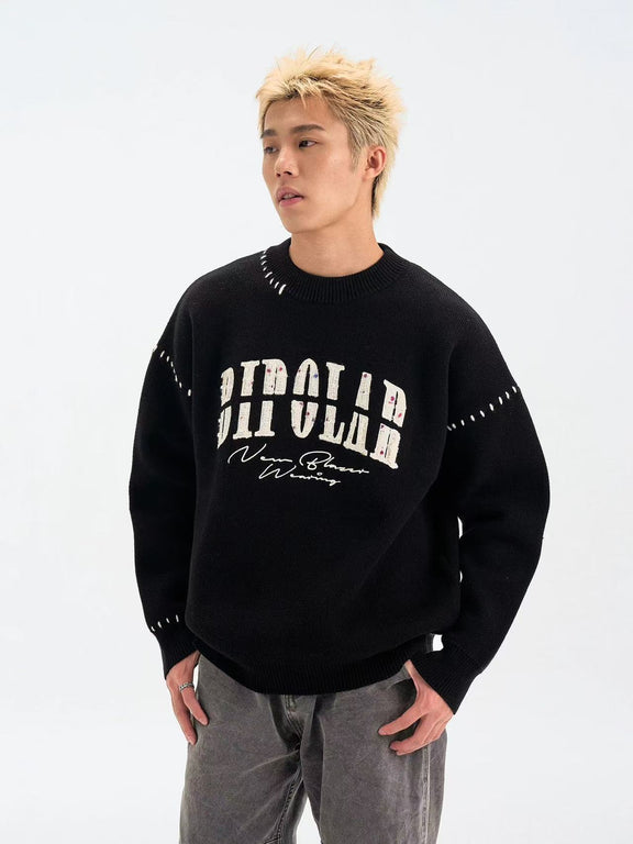 BIPOLAR Patch Embroidered Round Neck Pullover Sweater