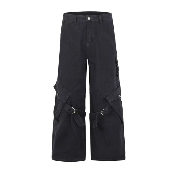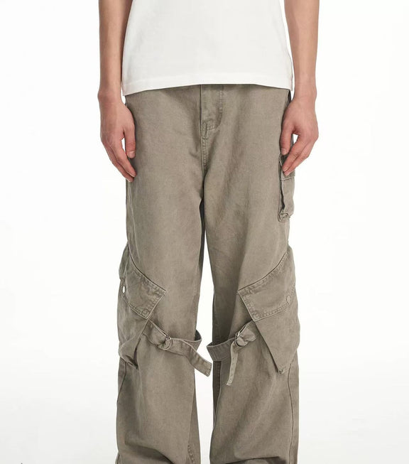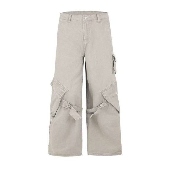 BIPOLAR Retro Ribbon Multi-pocket Workwear Style Pants