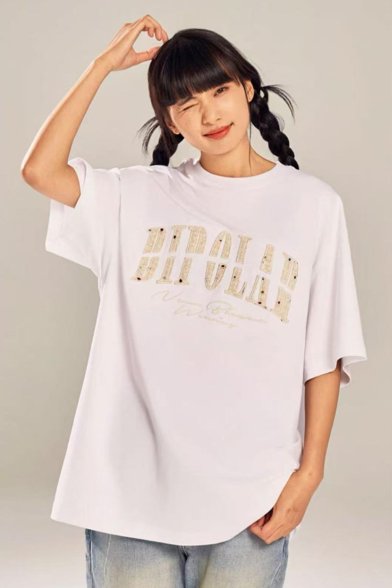 BIPOLAR Round Neck Patch Embroidered T-shirt