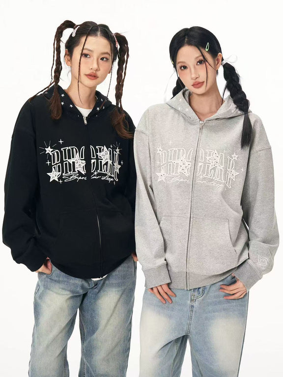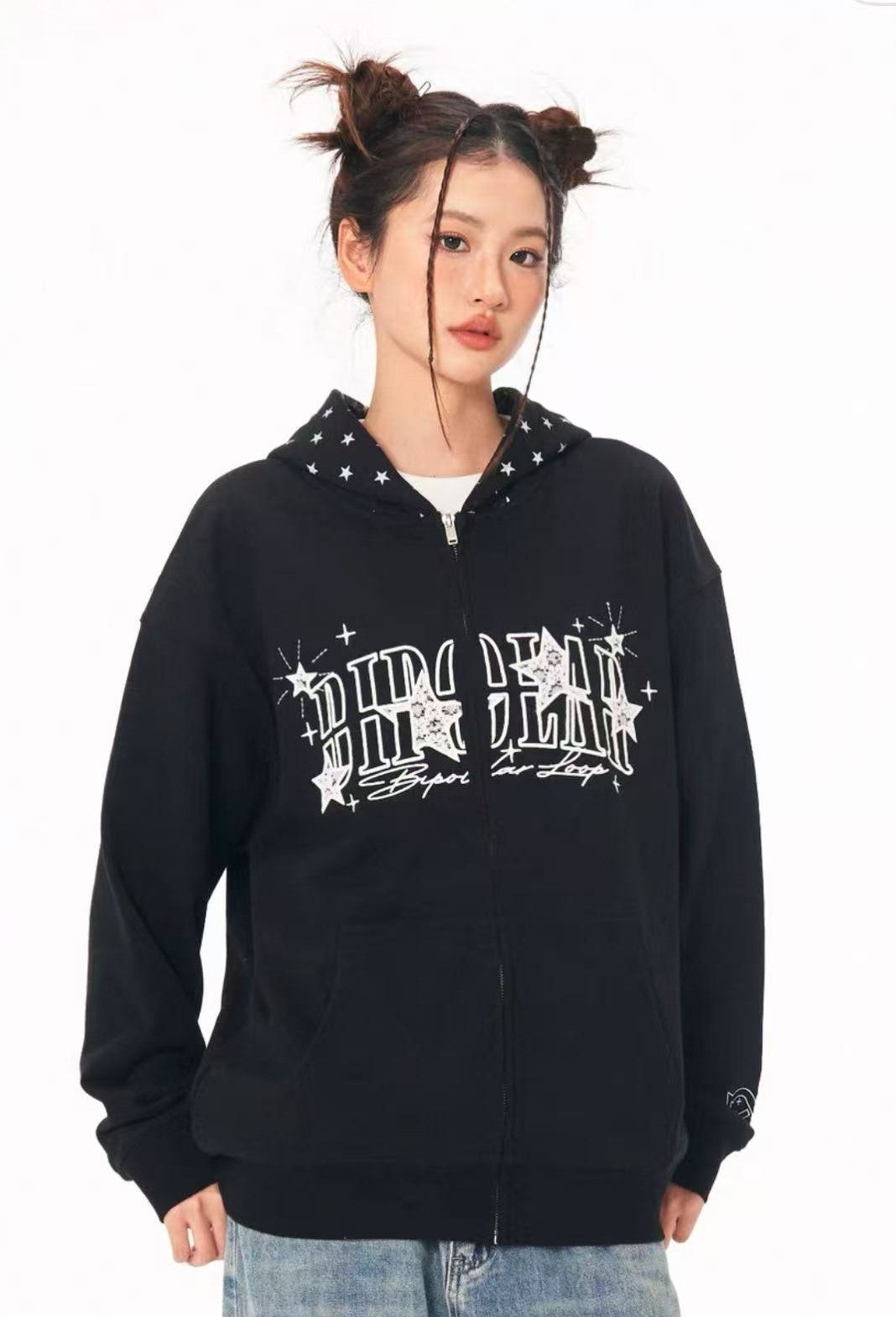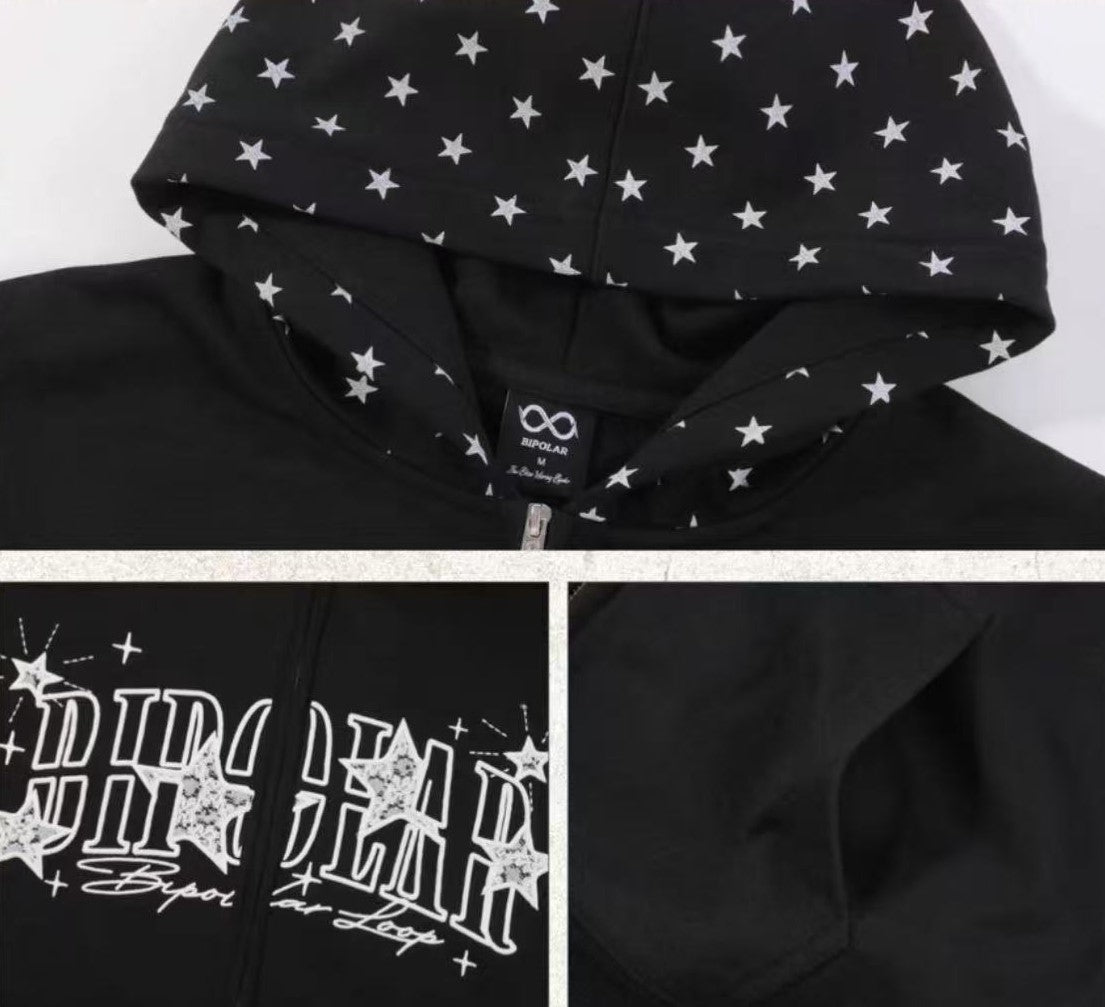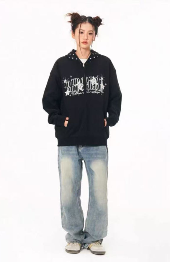 BIPOLAR Star Hooded Cardigan Sweatshirt
