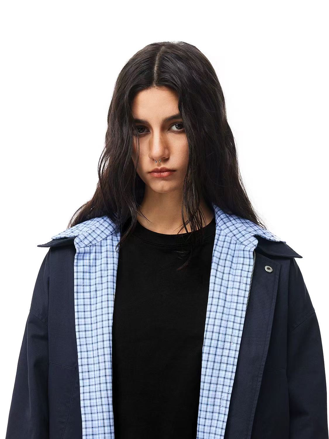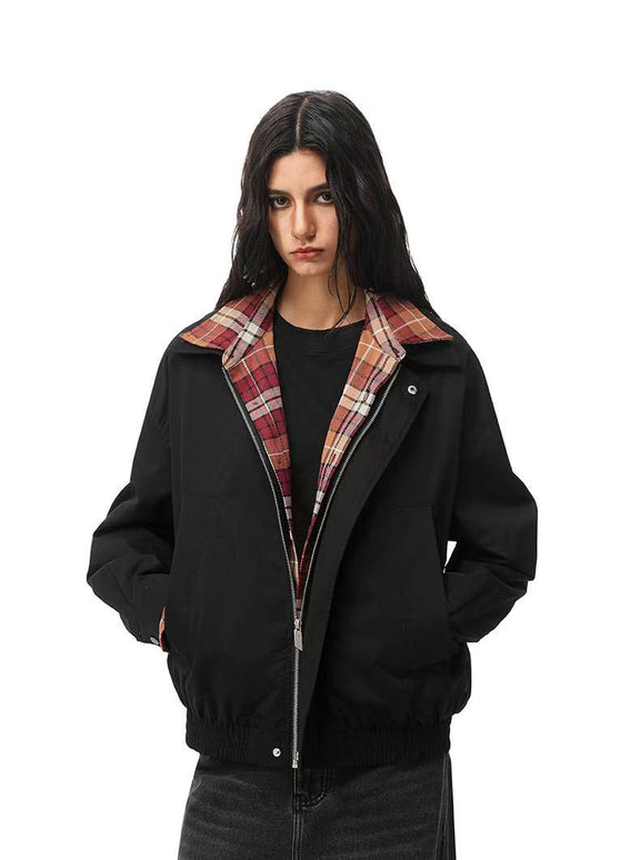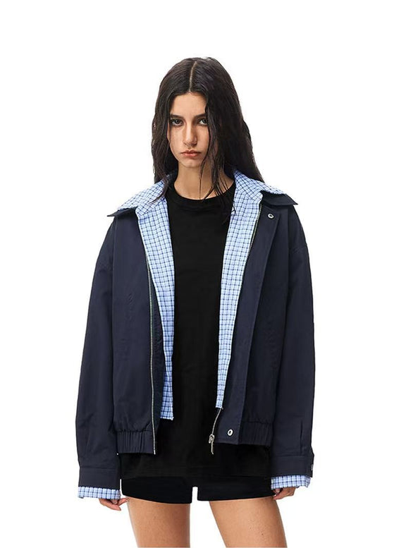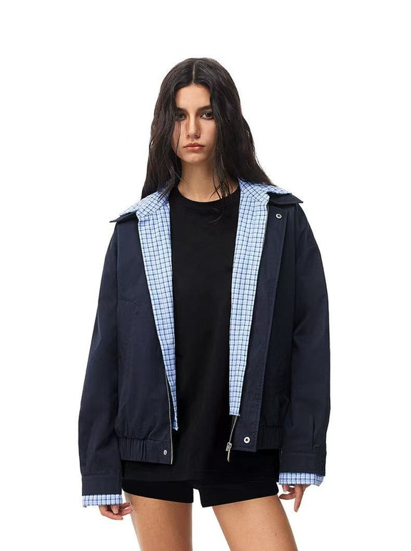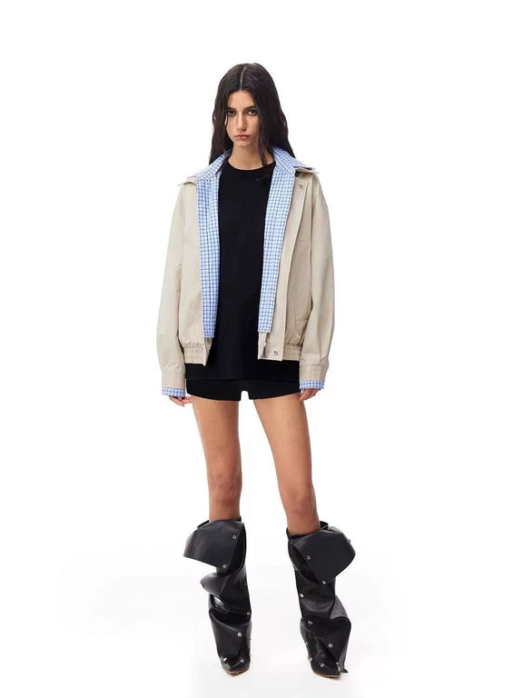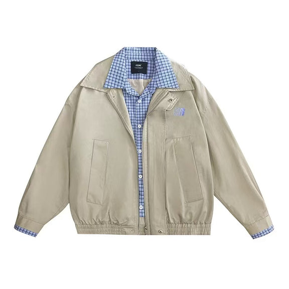FDR Contrast Patchwork Plaid Fake Two-piece Jacket