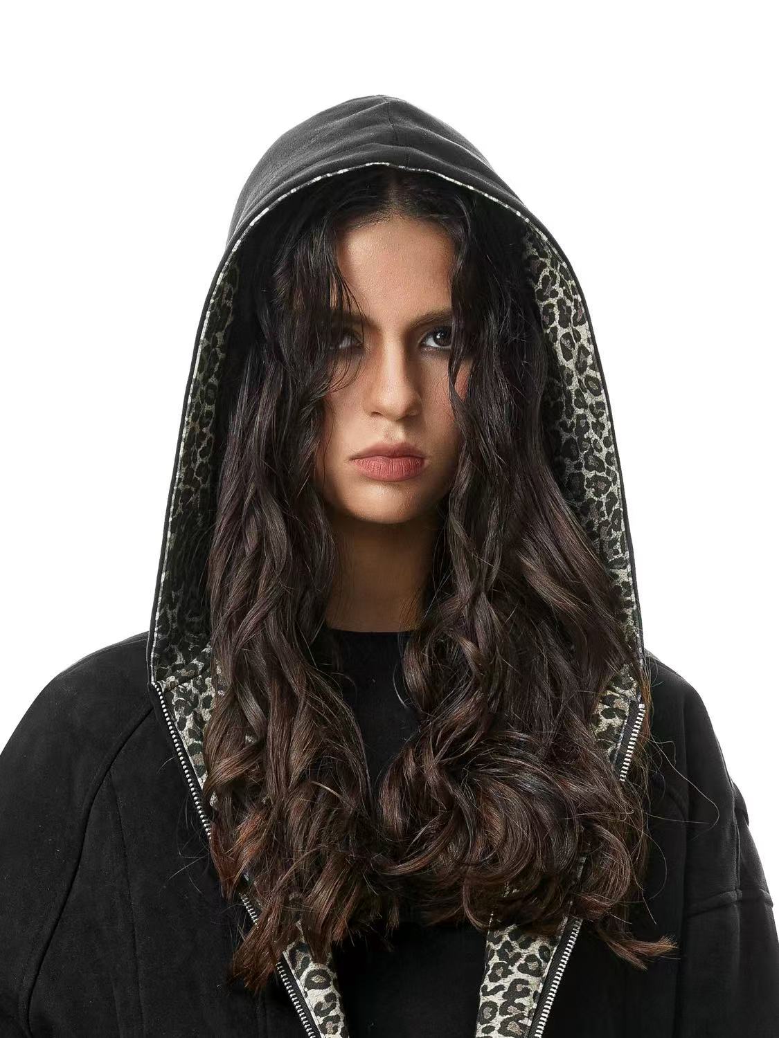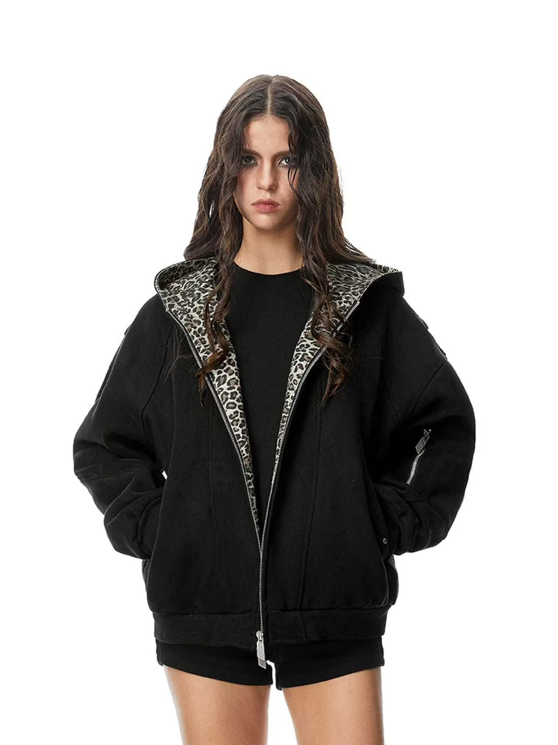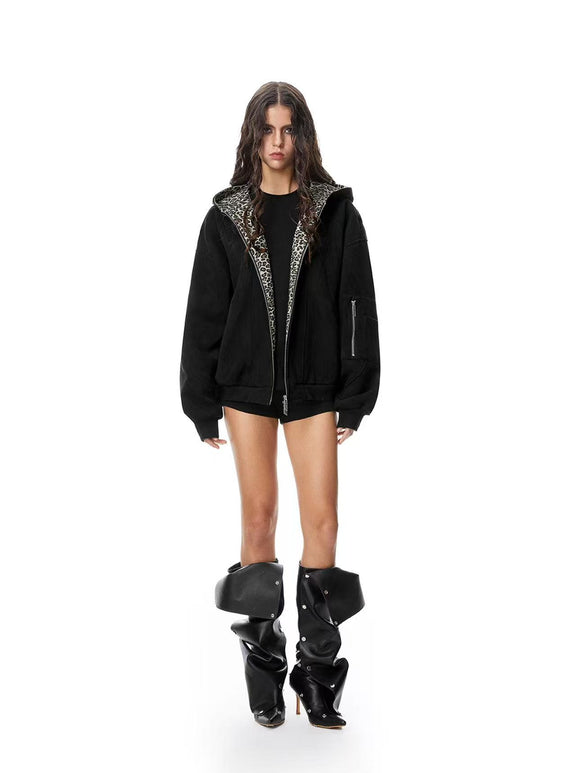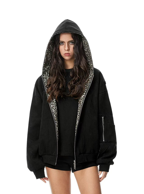 FDR Leopard Print Suede Hooded Jacket