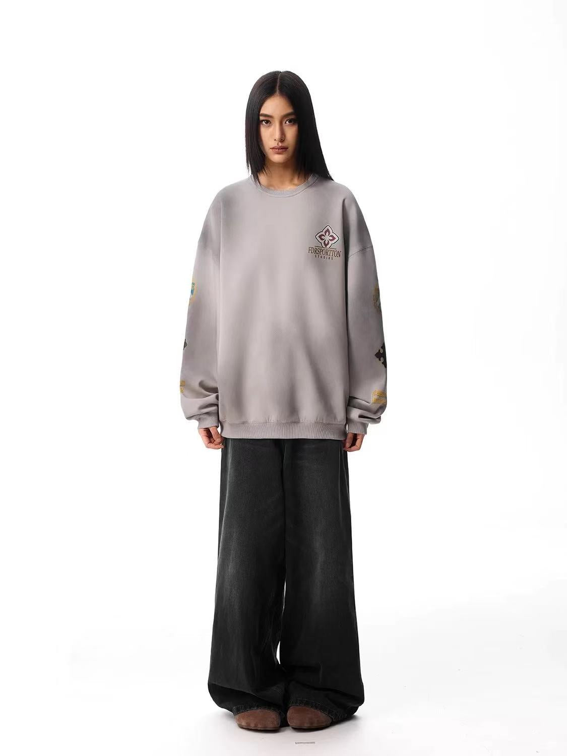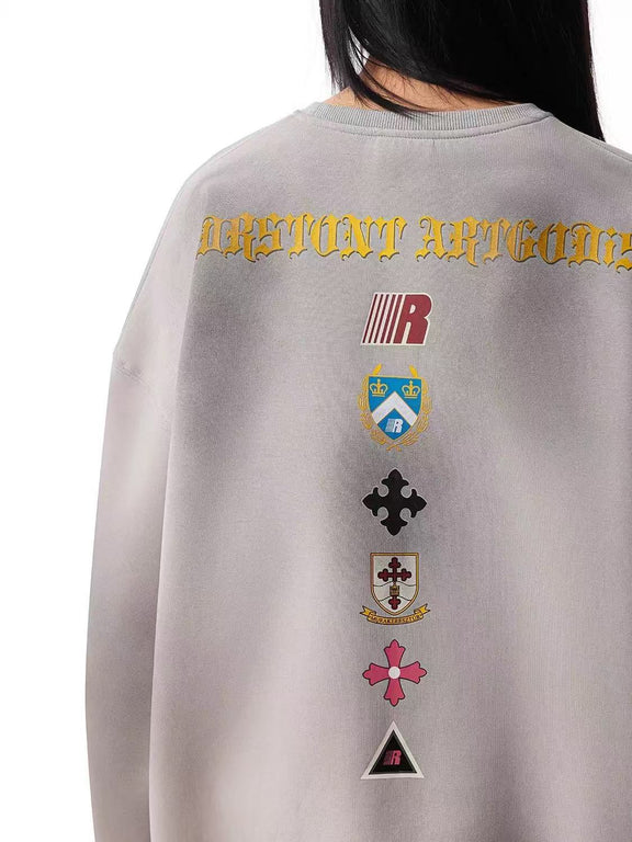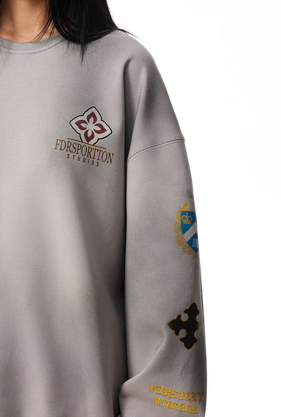 FDR Retro Dirty Round Neck Logo Print Sweatshirt