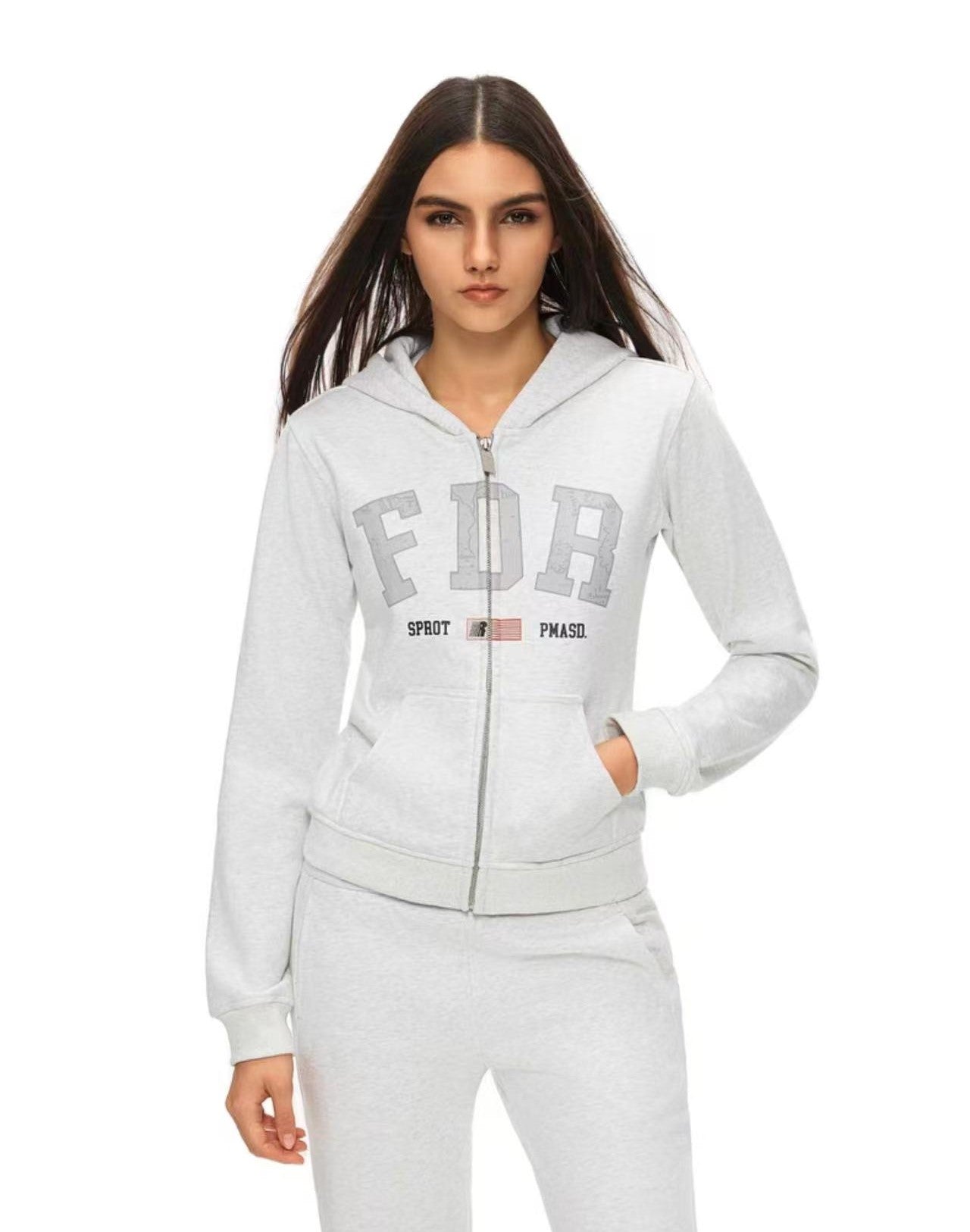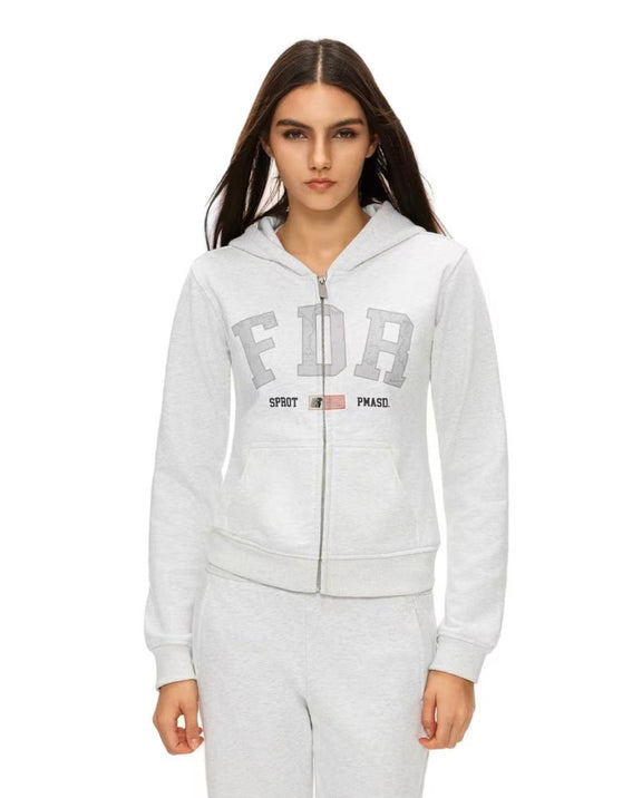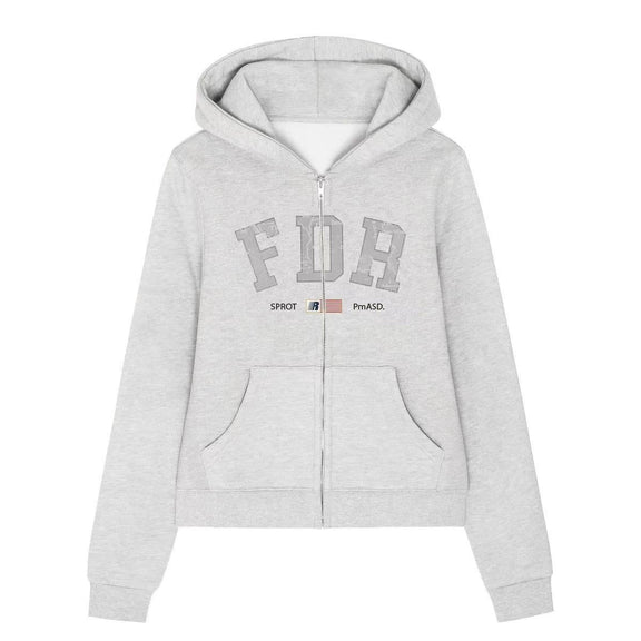 FDR Retro Logo Printed Zipper Hoodie (For Women)