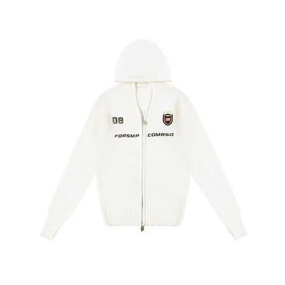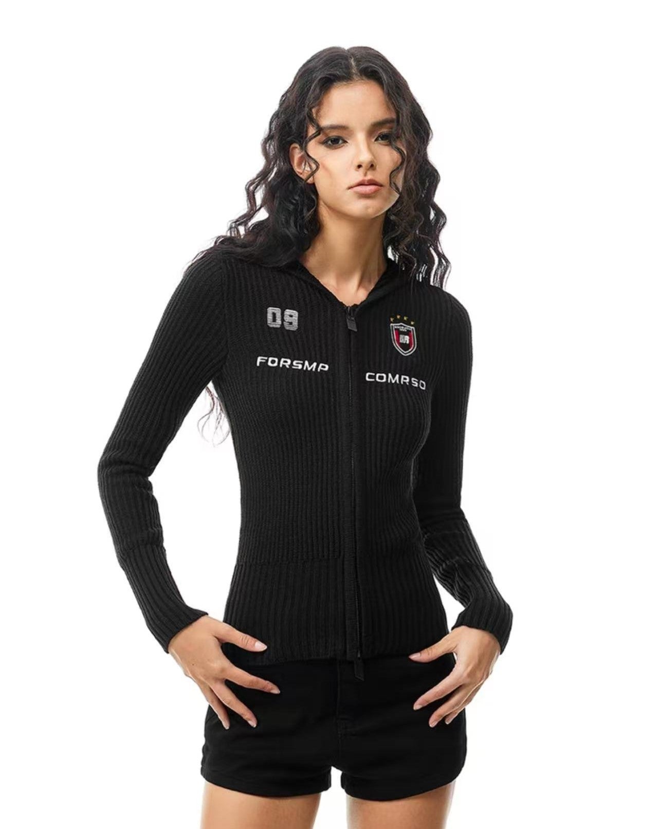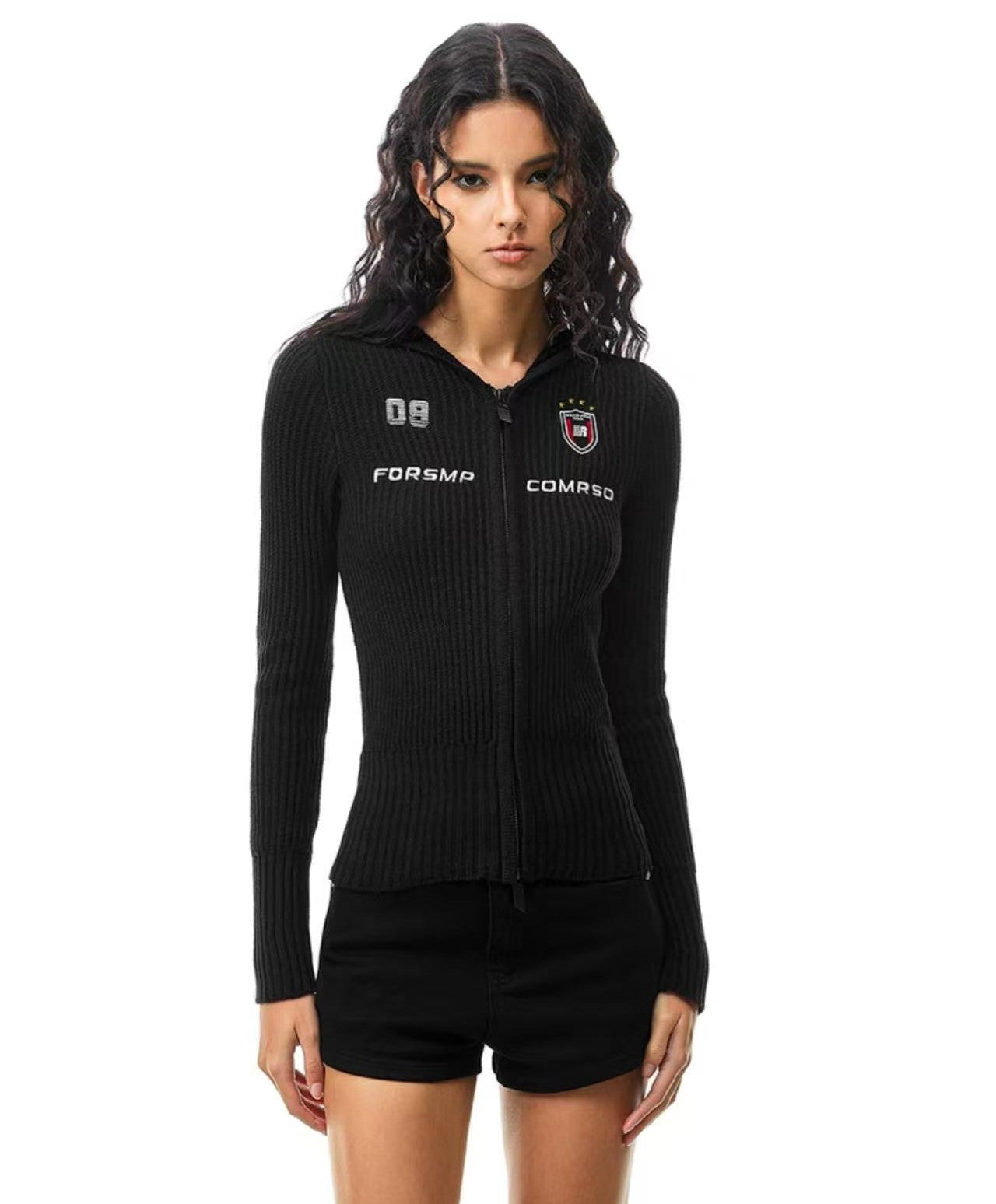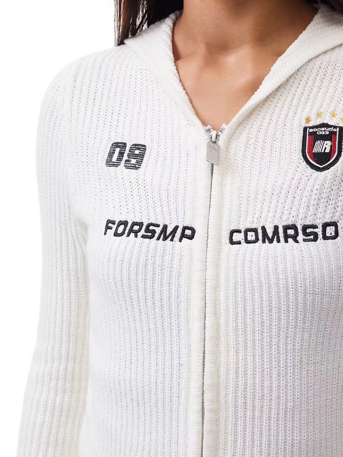 FDR Slim Fit Badge Knitted Zipper Hoodie (For Women)
