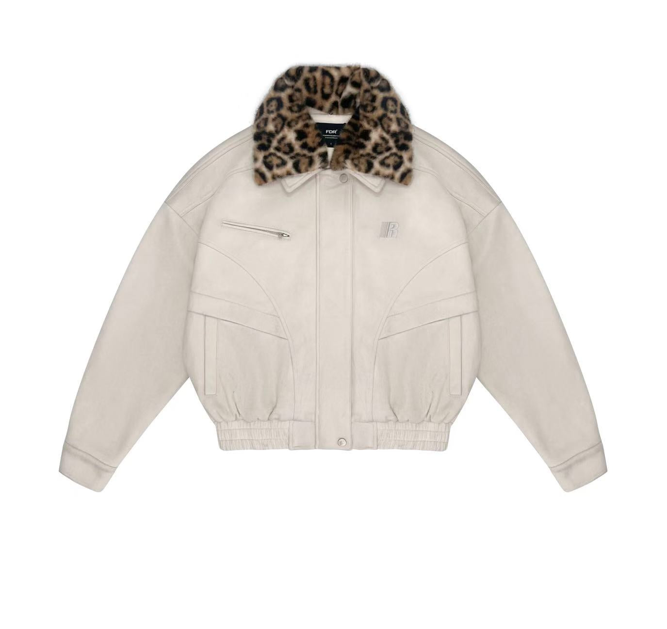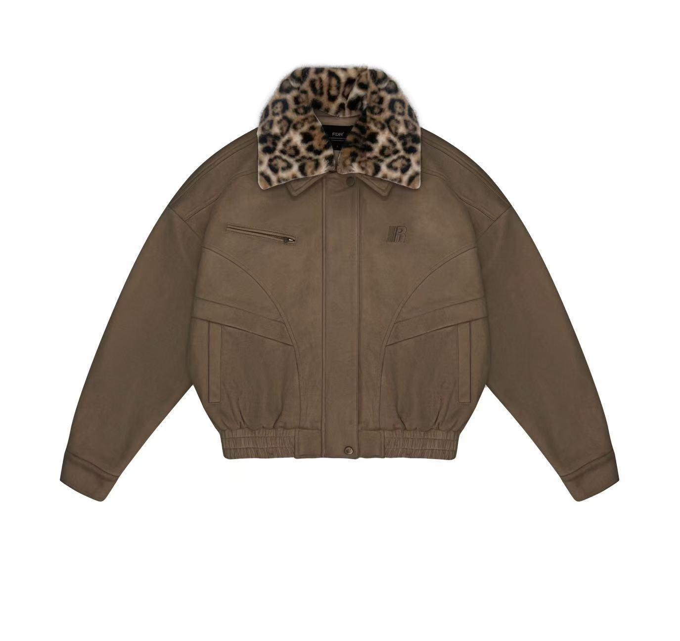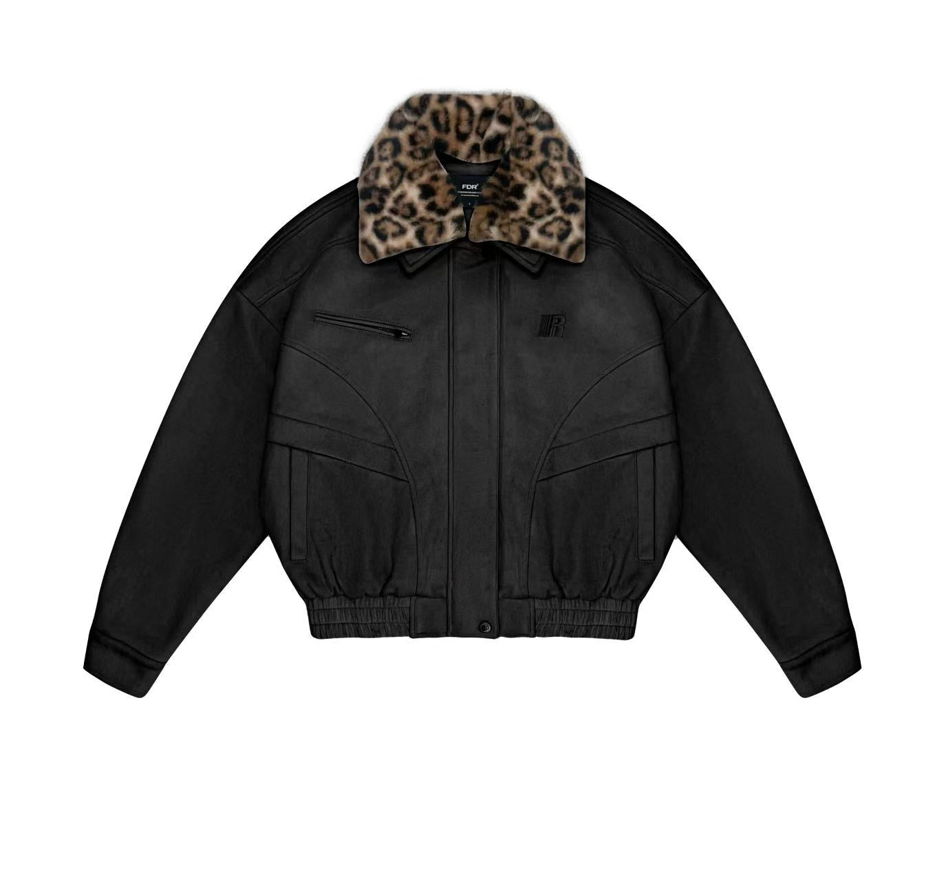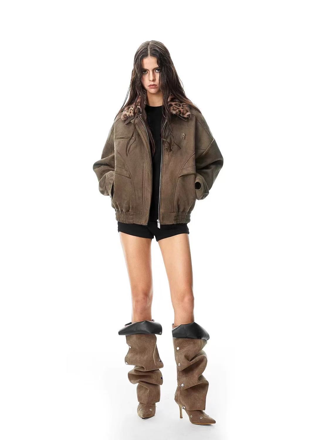 FDR Suede Leopard Print Contrast Lapel Cardigan Jacket