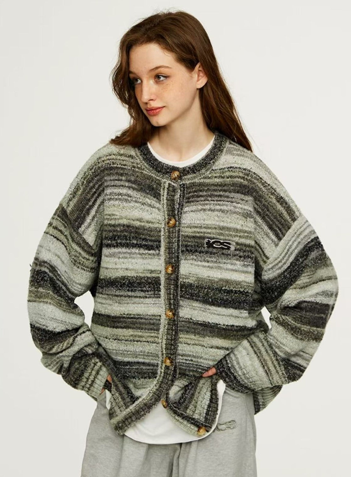 ICONSLAB Color Gradient Striped Cardigan Sweater