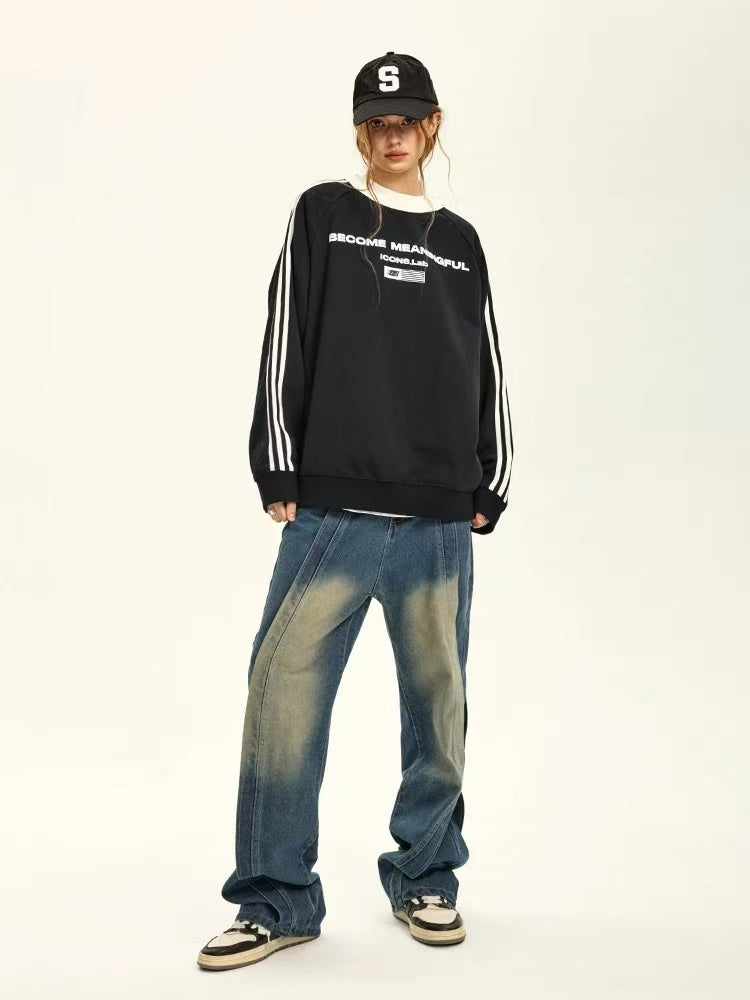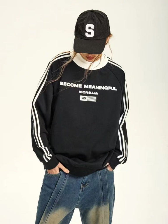 ICONSLAB Contrast Color Three stripes Web Foam Printed Sweatshirt