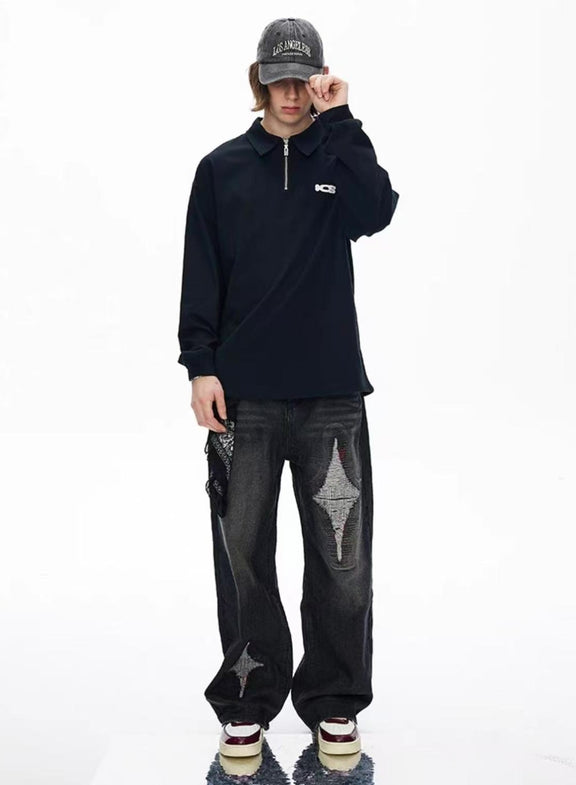 ICONSLAB Monogram Half-zip Long-sleeve Polo Shirt