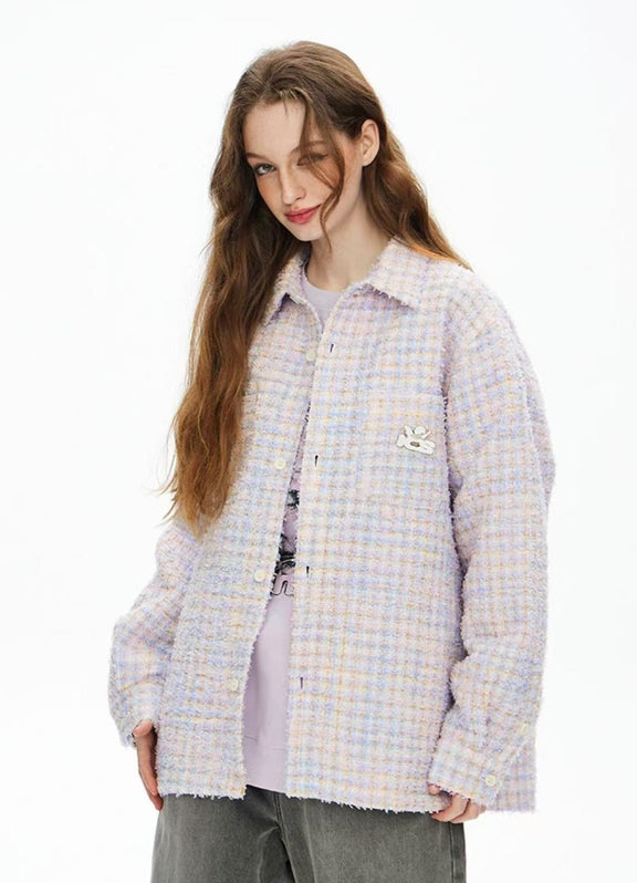 ICONSLAB Tweed Woven Long-sleeve Shirt Jacket