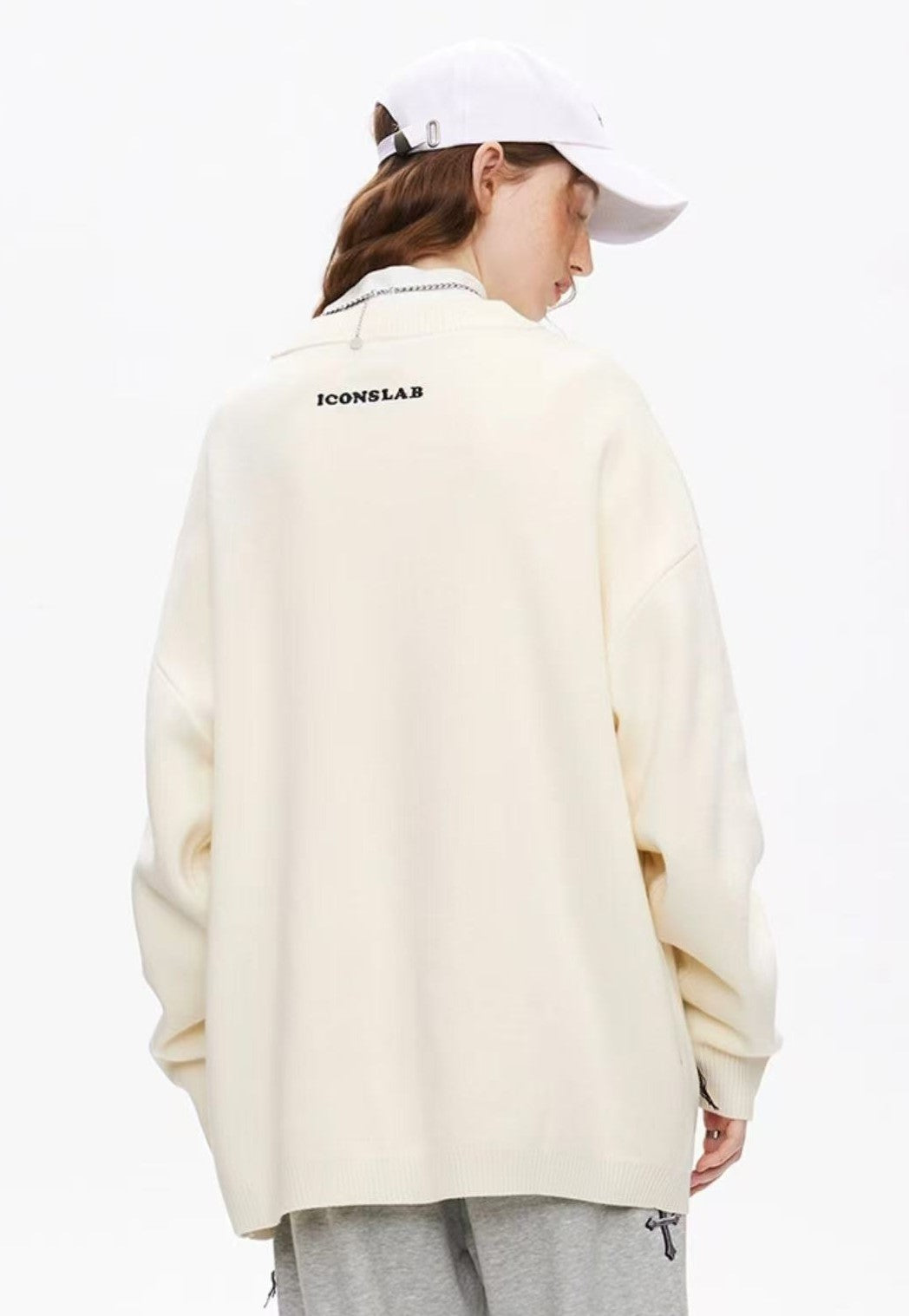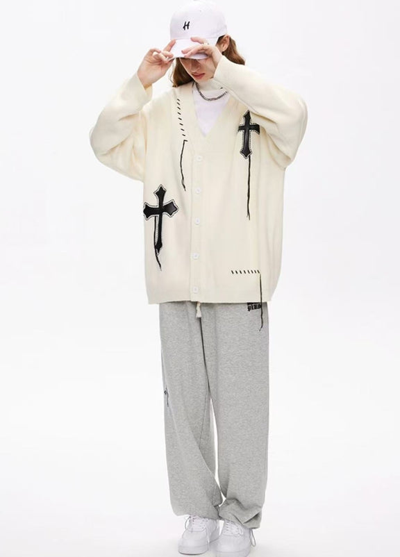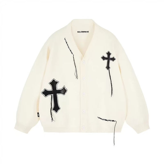 ICONSLAB V-neck Knitted Cardigan Cross Jacquard Sweater