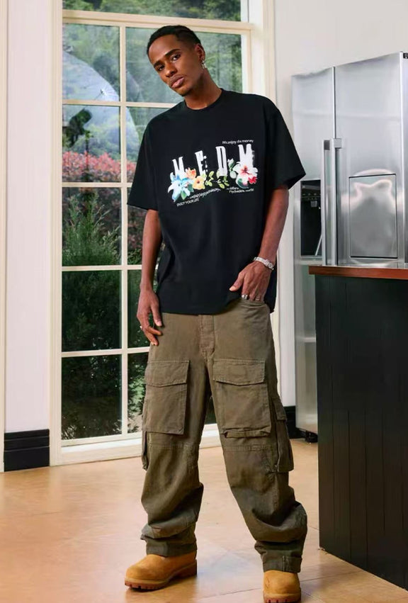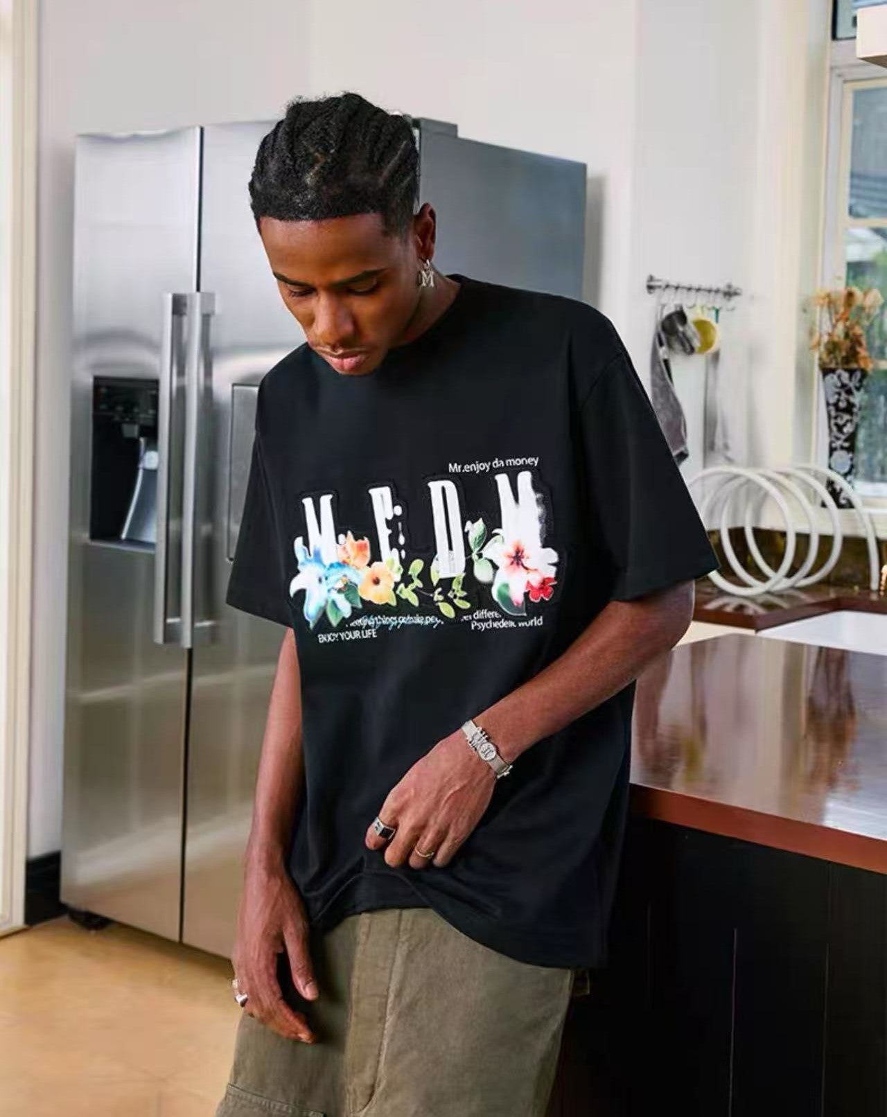 MEDM Appliqué Floral Short-sleeved T-shirt