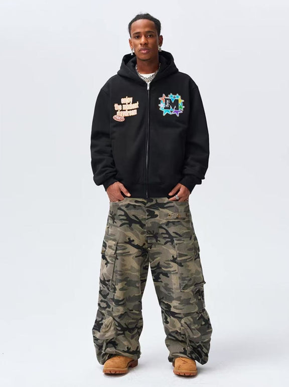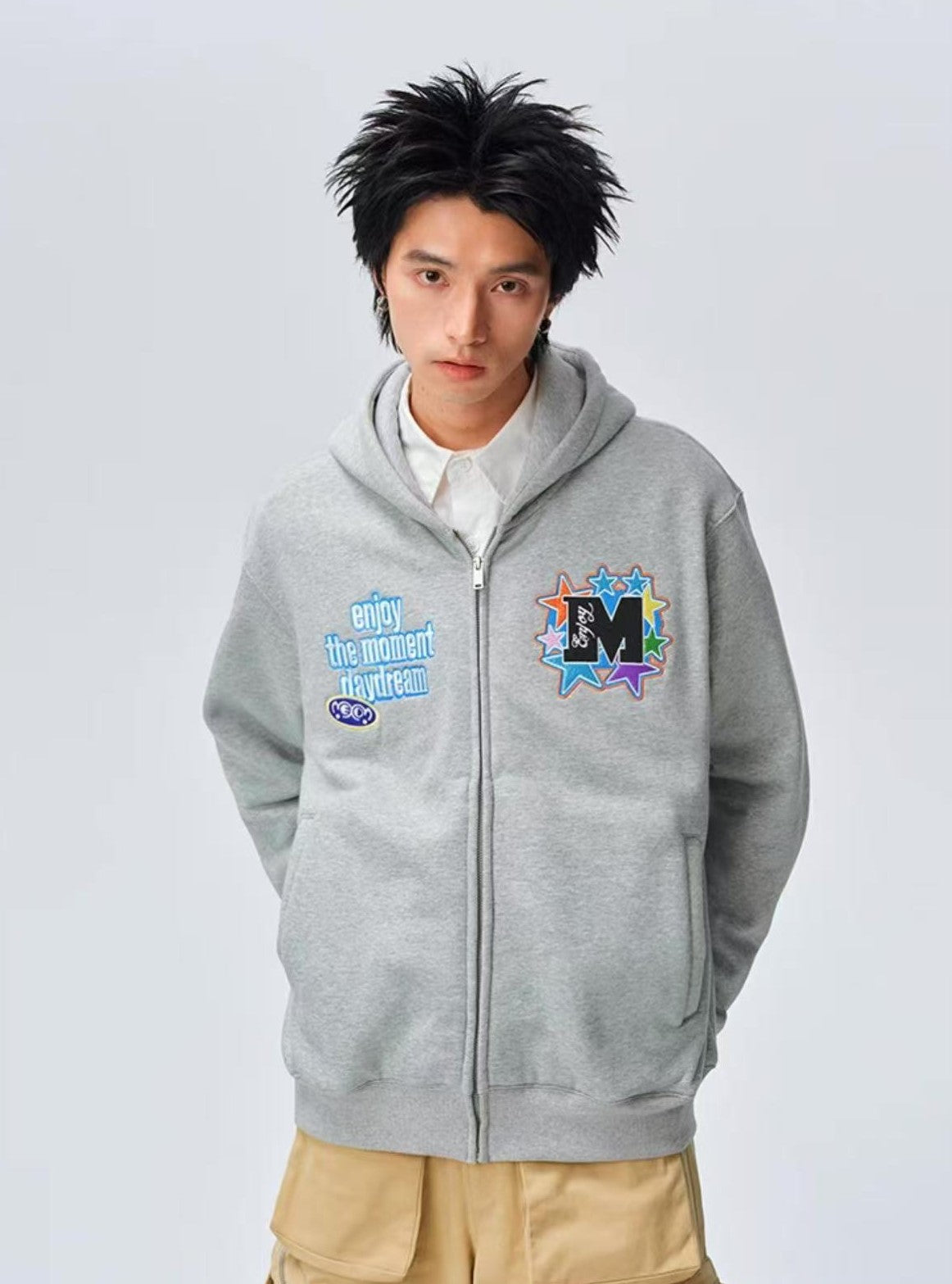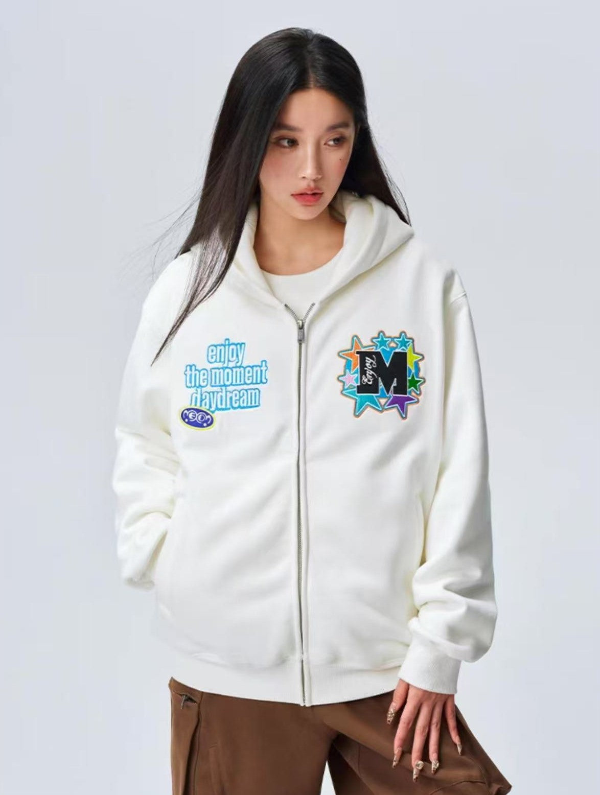 MEDM Blooming Star Embroidered Zipper Hoodie