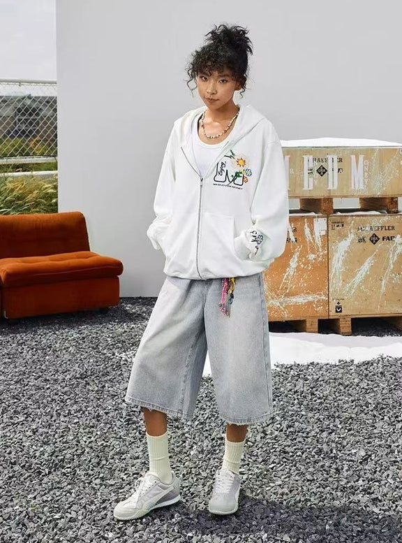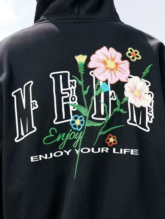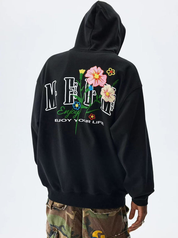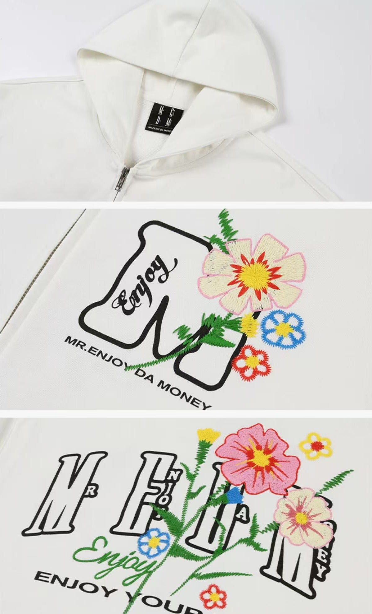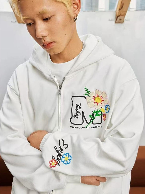 MEDM Chain Embroidered Flower Large M Zipper Hoodie
