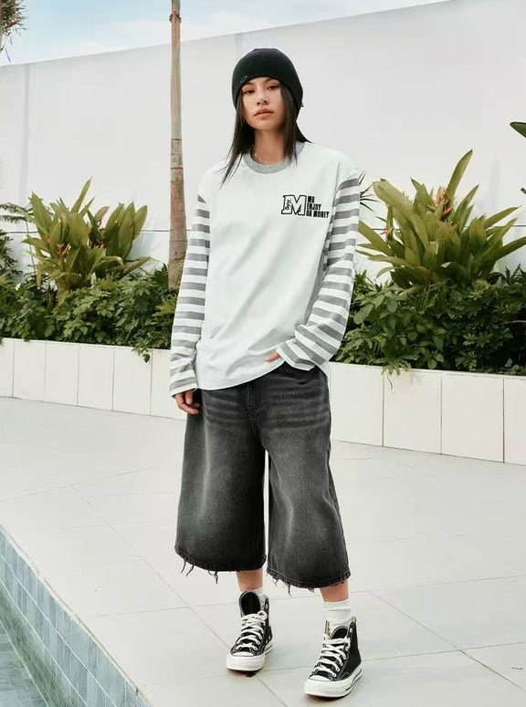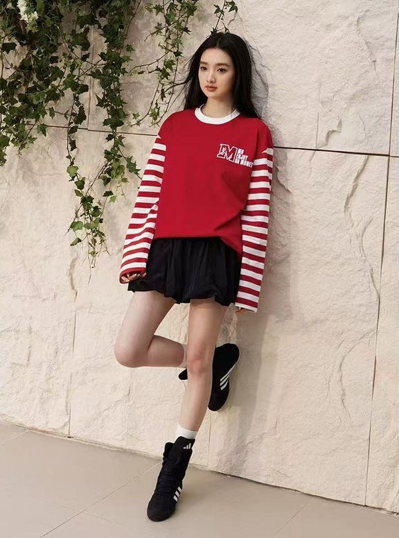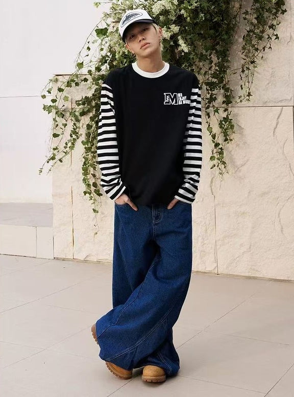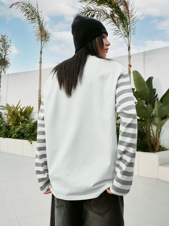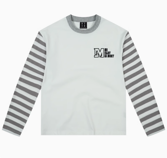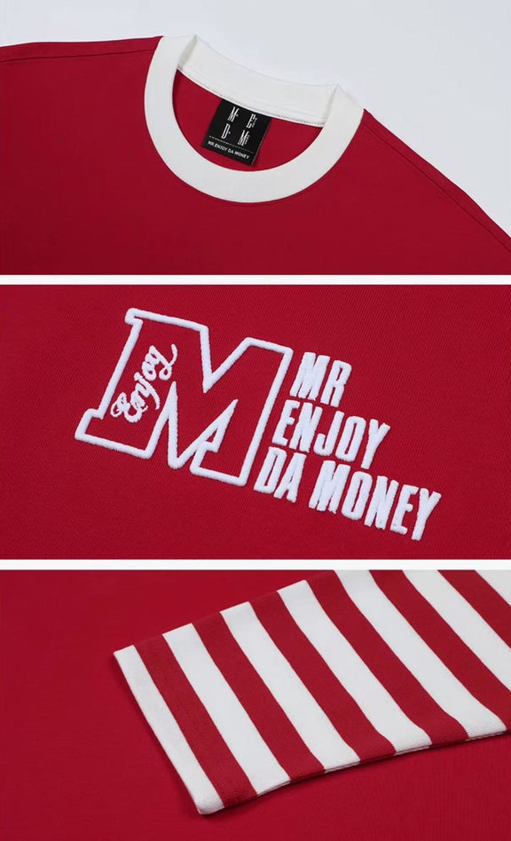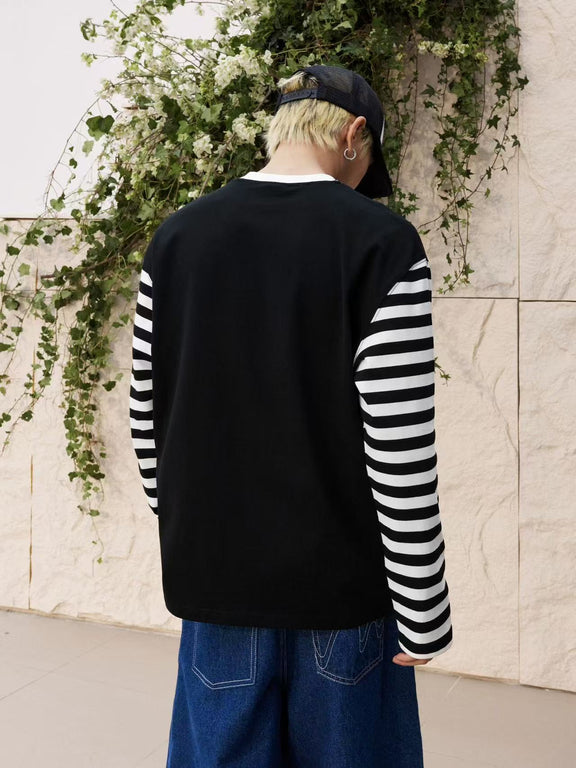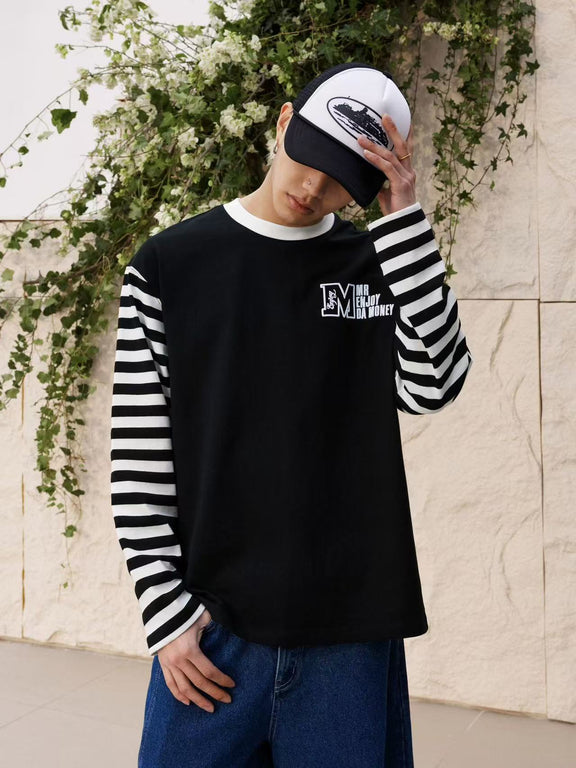MEDM Contrast Collar Striped Long-sleeve T-Shirt