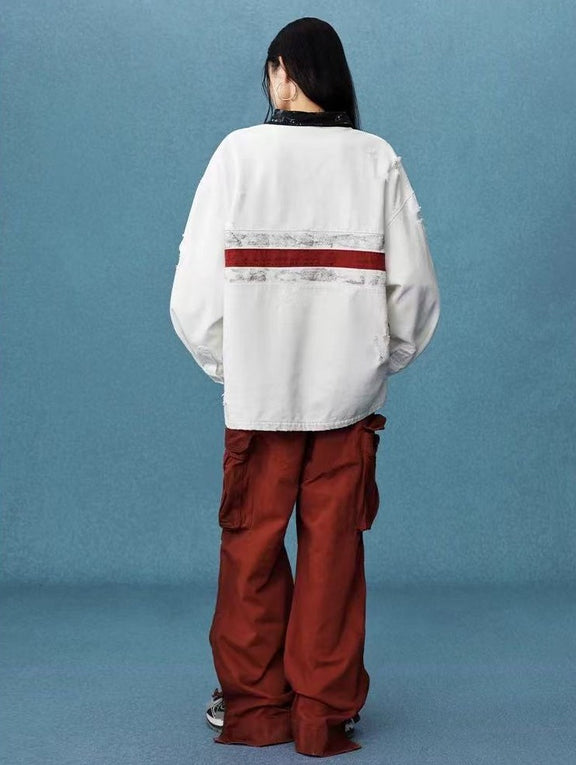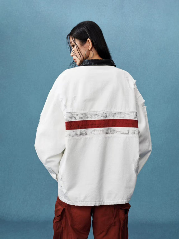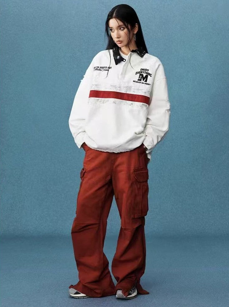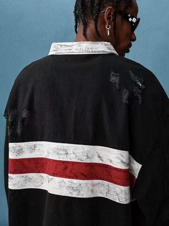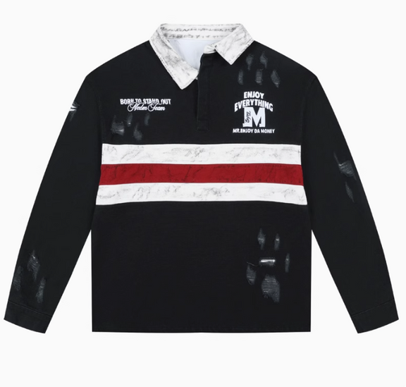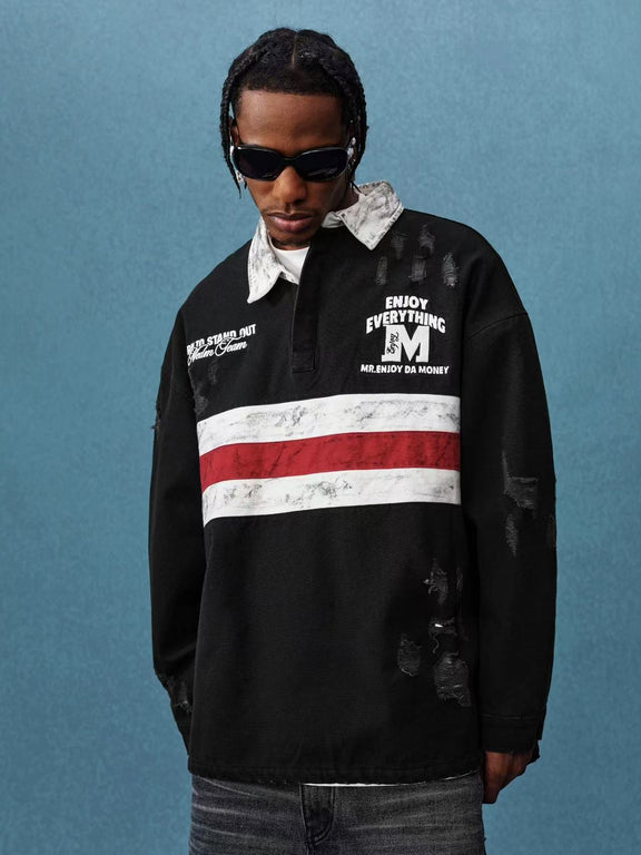 MEDM Contrast Color Striped Polo Long-sleeve T-shirt