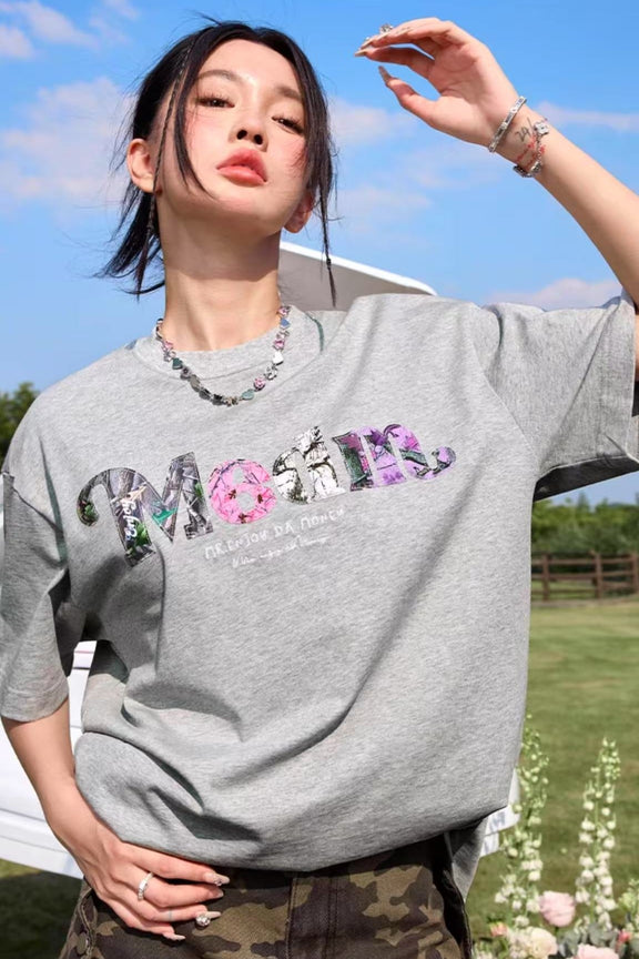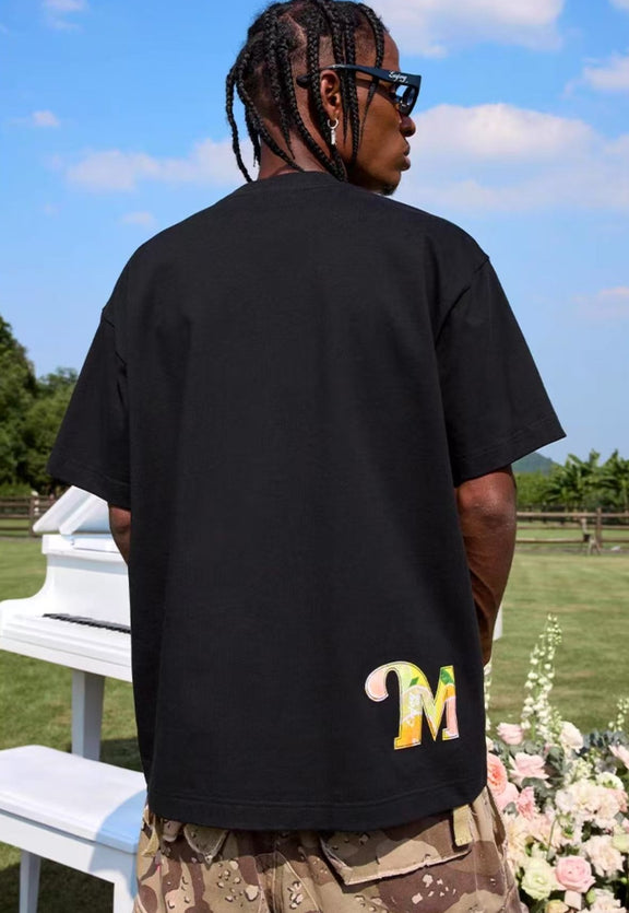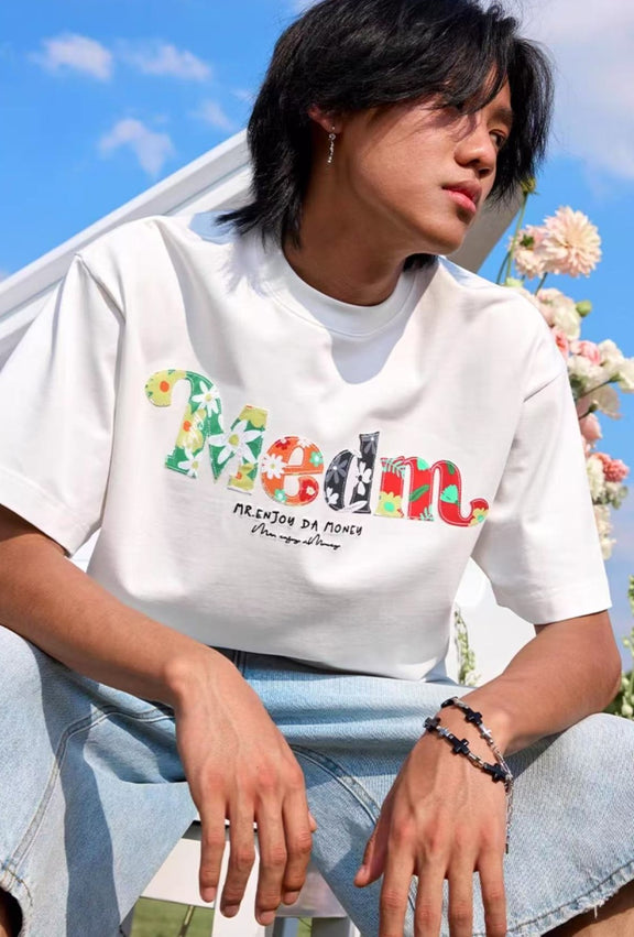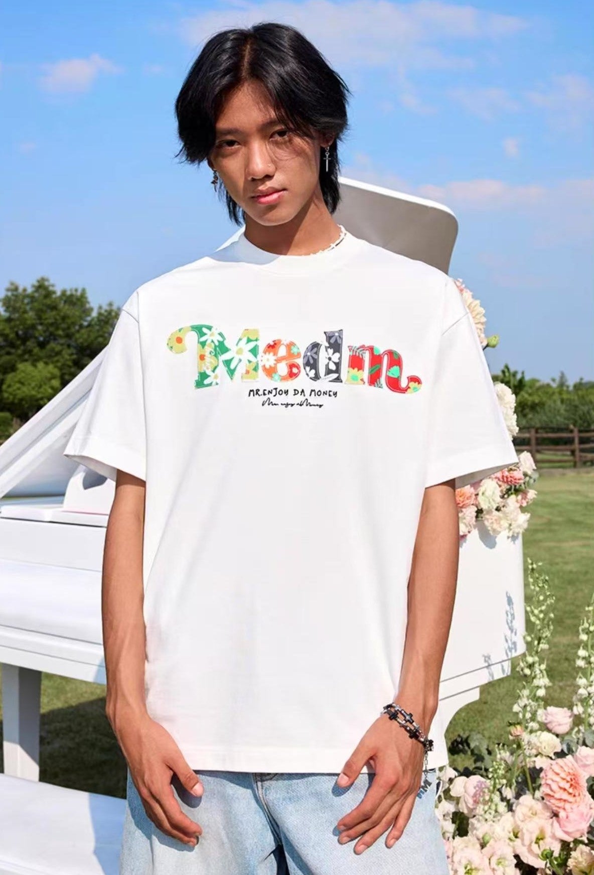 MEDM Floral Fruit Branch Padded Patch Embroidered Short-sleeved T-shirt