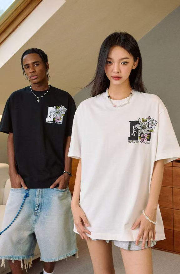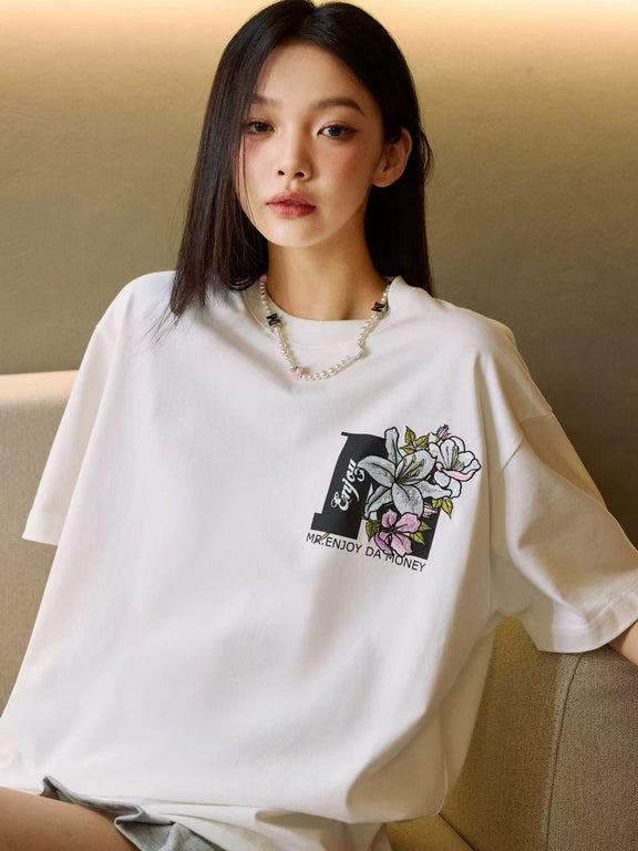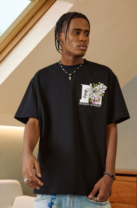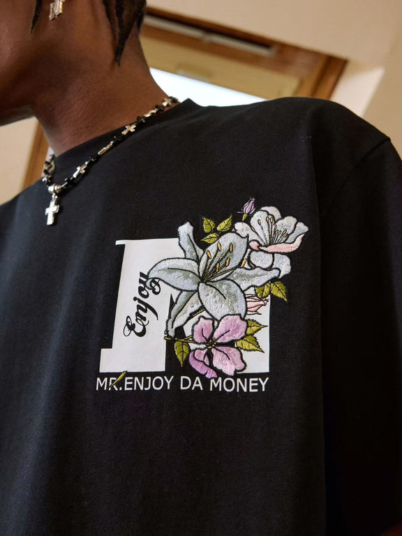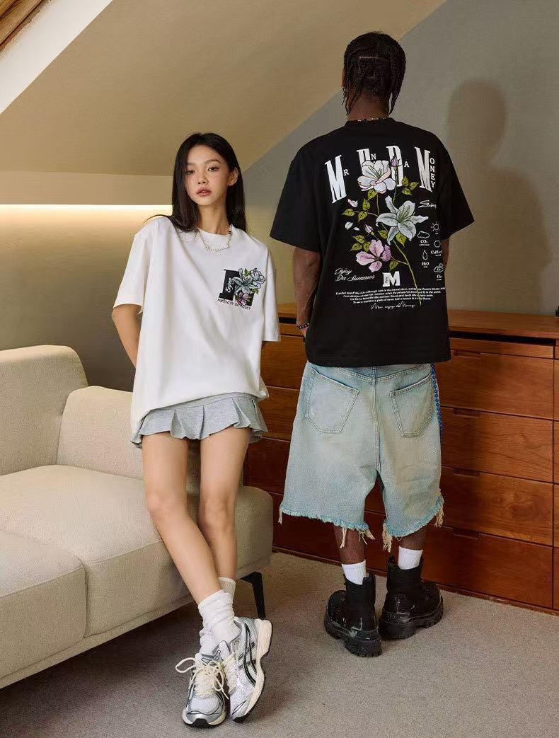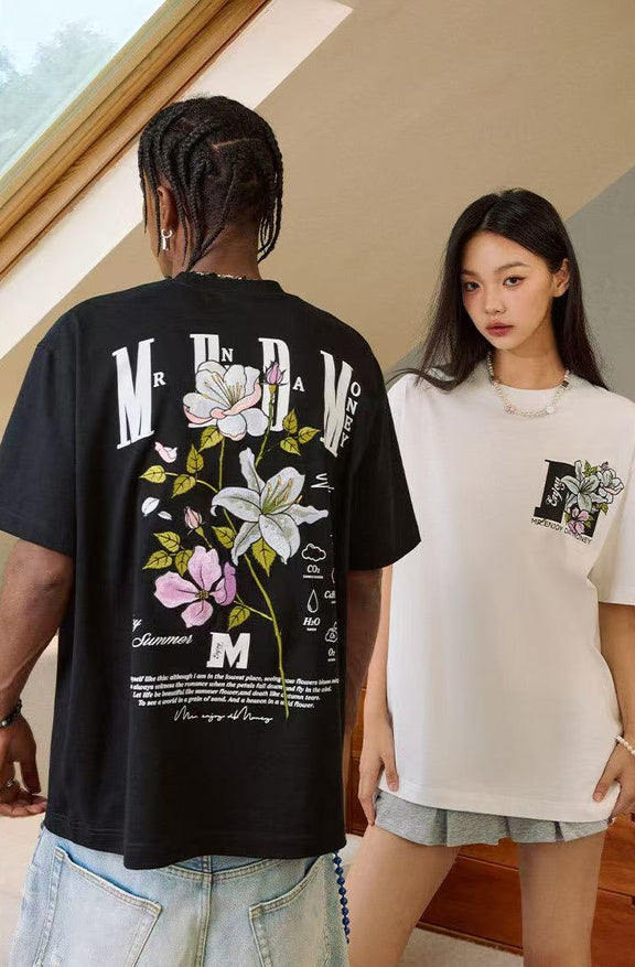 MEDM Flowers Blooming 3D Embroidered LOGO Short-sleeve T-shirt