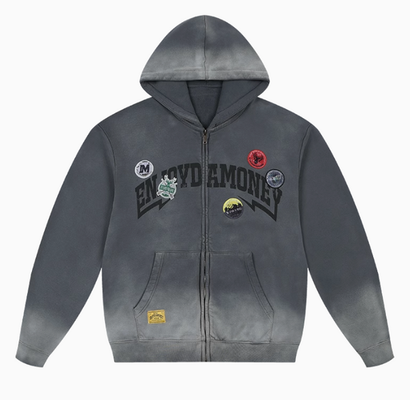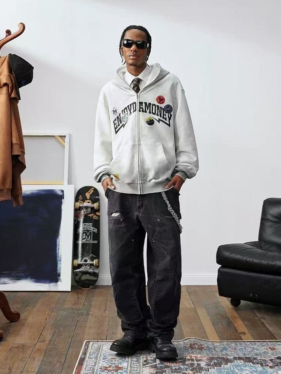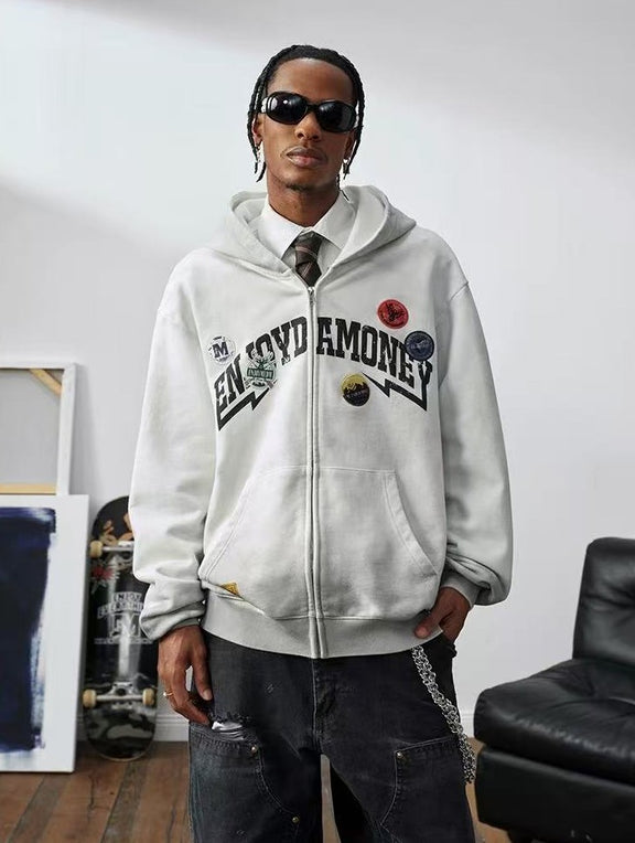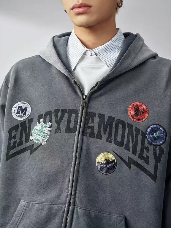 MEDM Hunting Theme Distressed Washed Zipper Hoodie