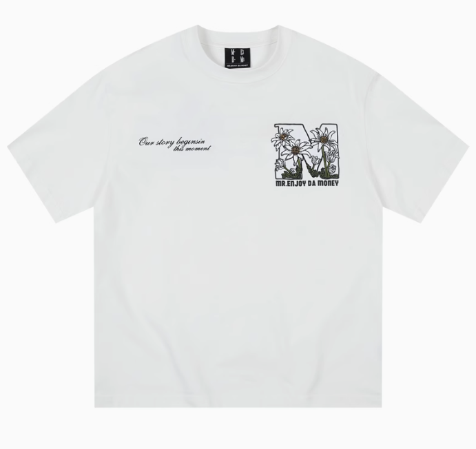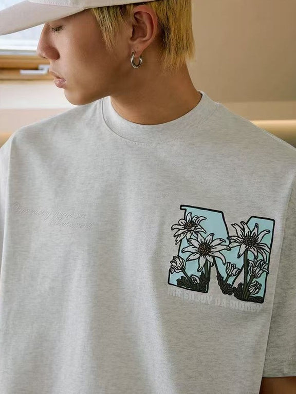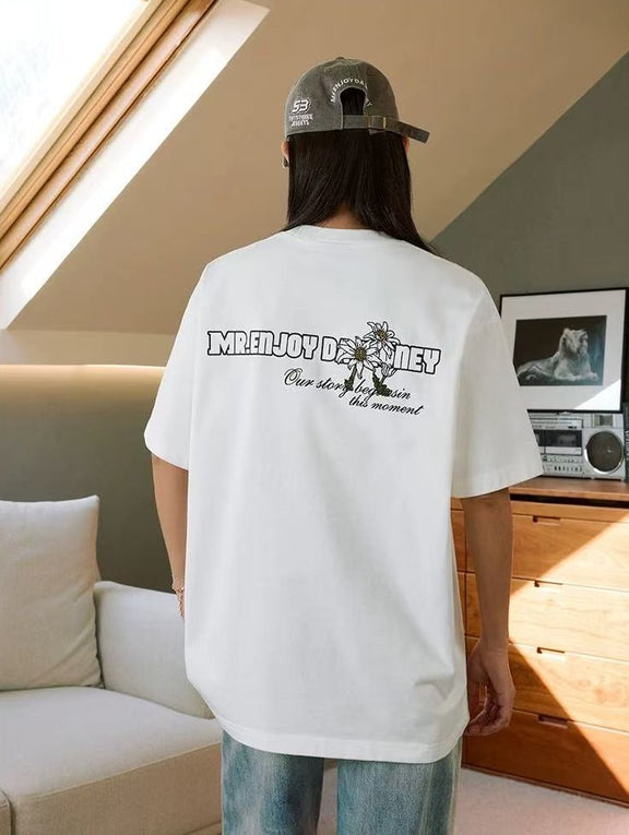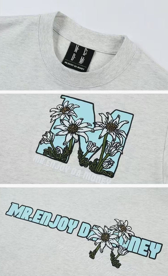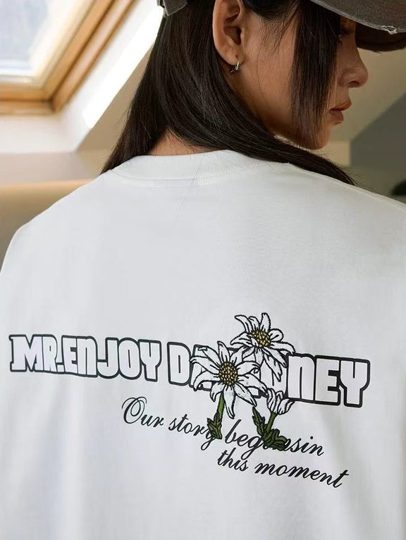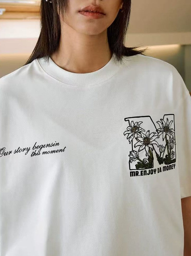 MEDM Large M Hand-painted Daisy Flower Short-sleeved T-shirt