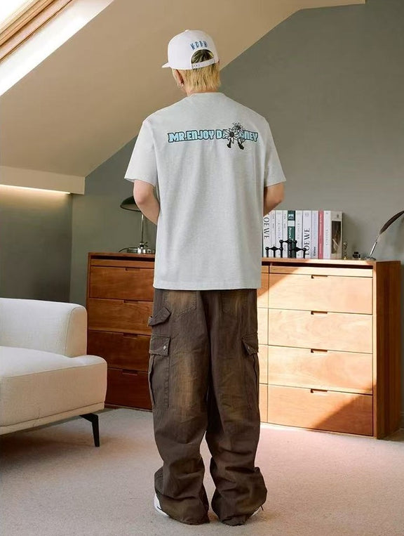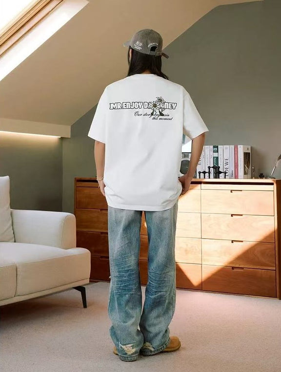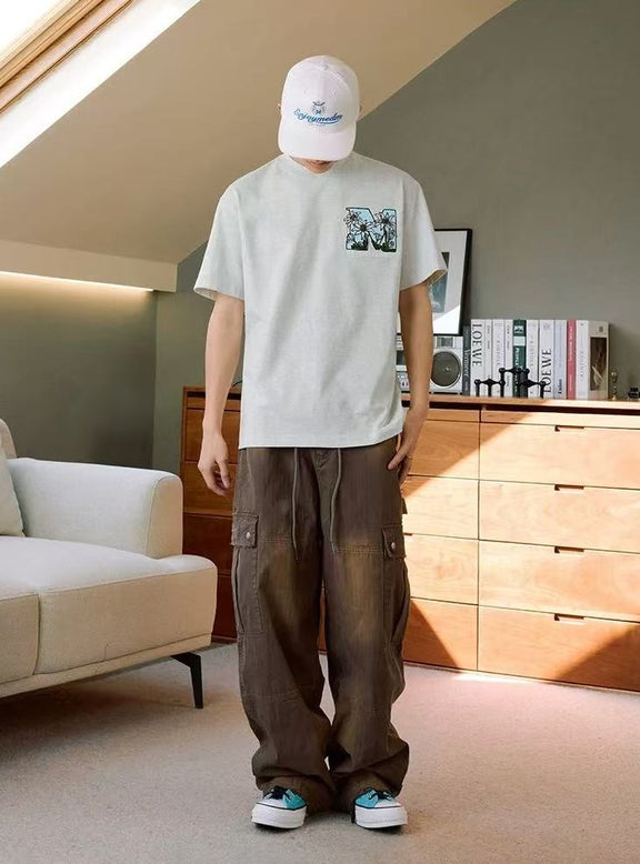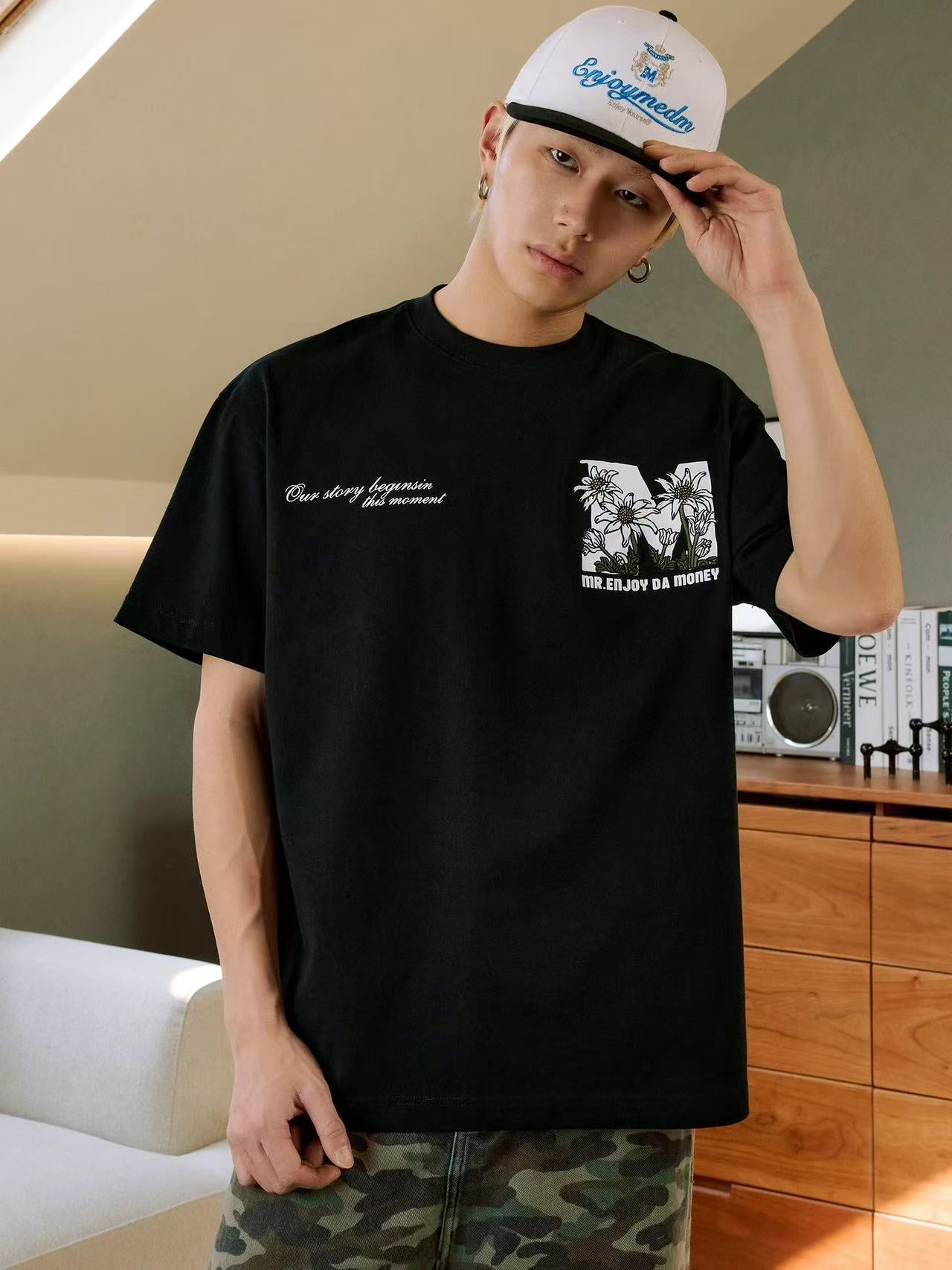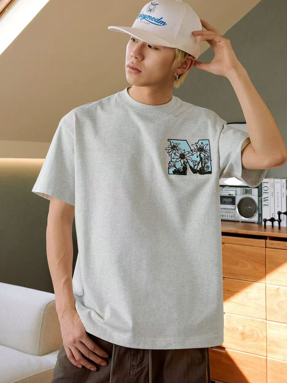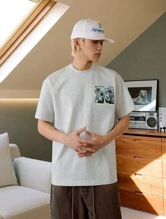 MEDM Large M Hand-painted Daisy Flower Short-sleeved T-shirt