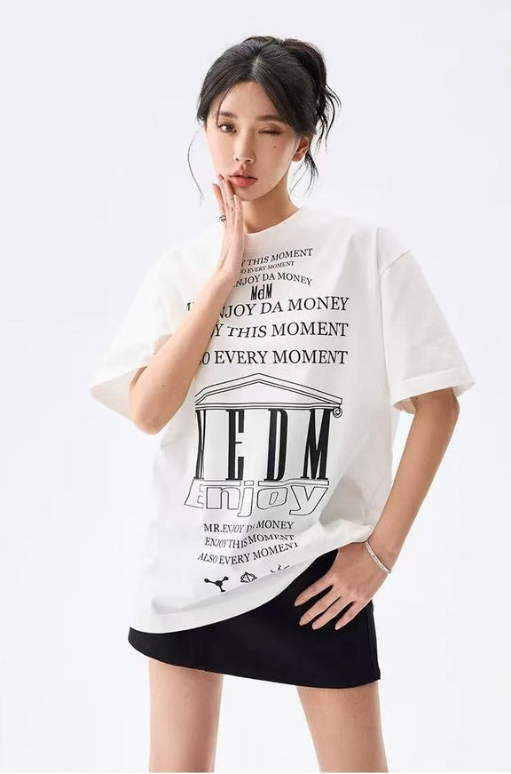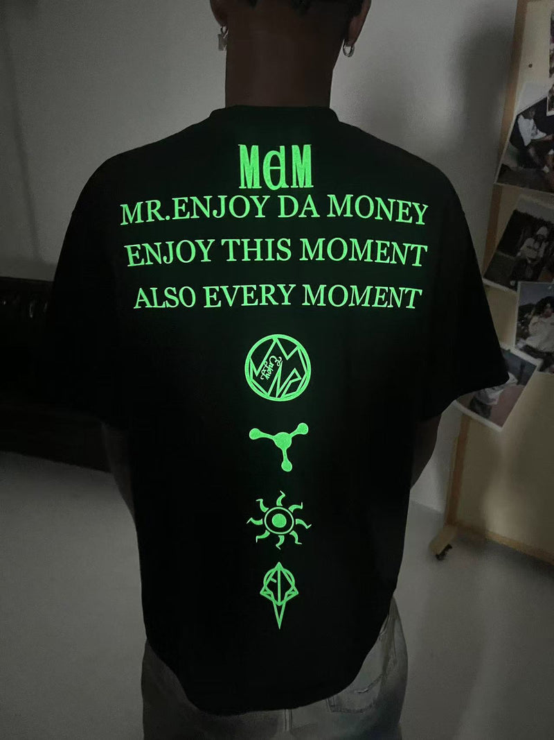MEDM Letters Printed Luminous Short-sleeved T-shirt