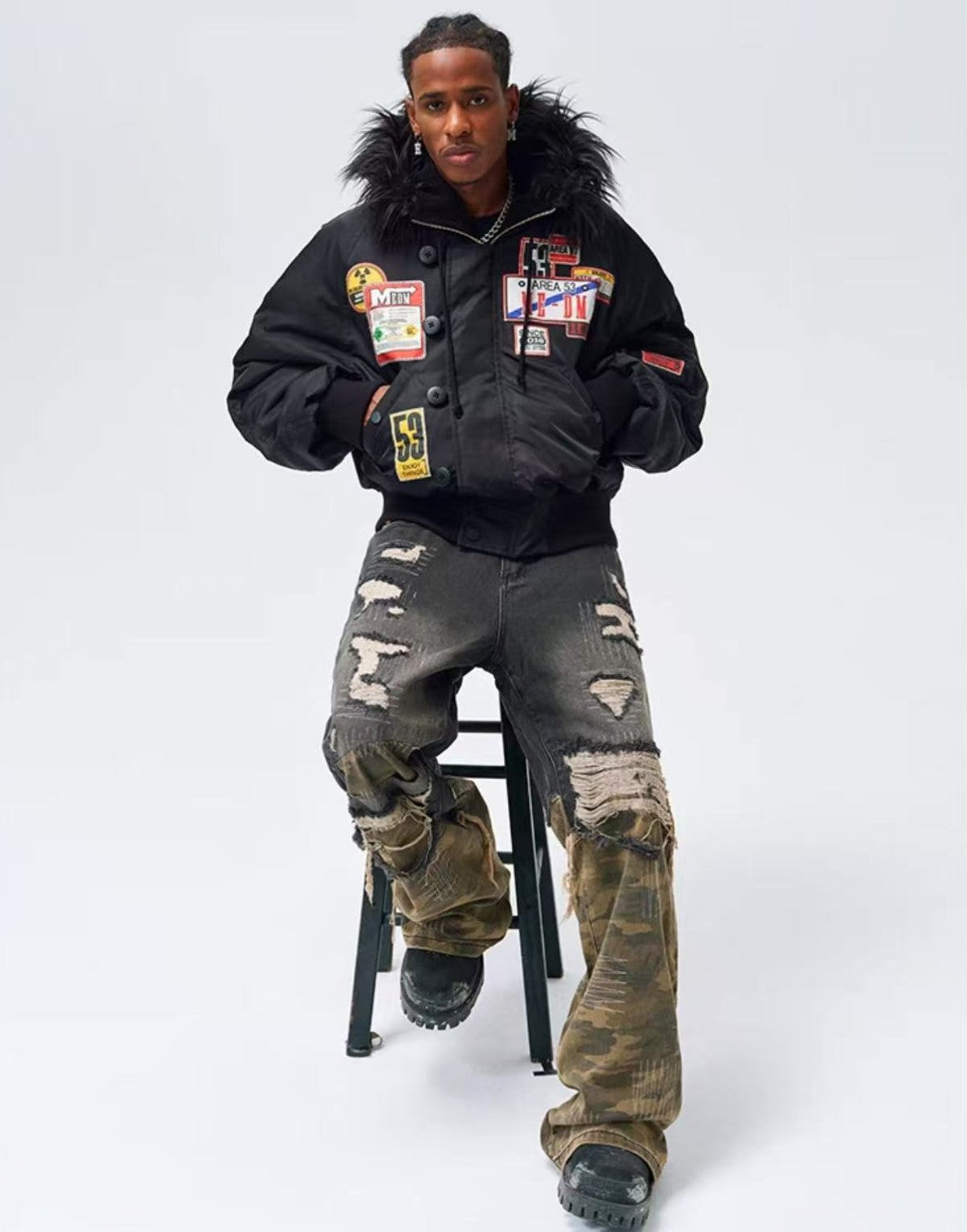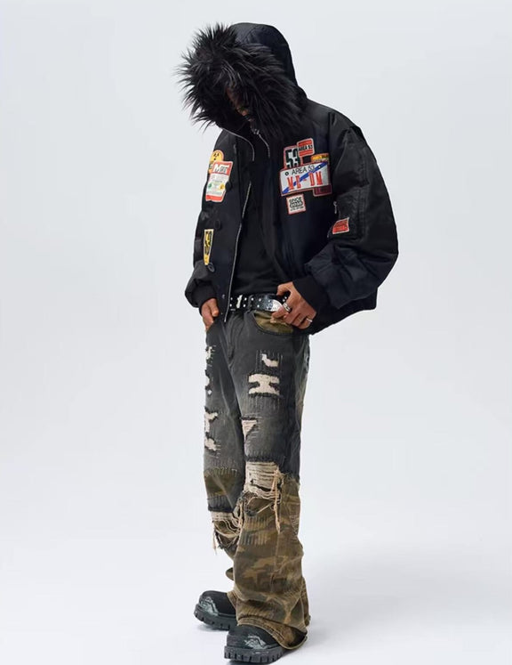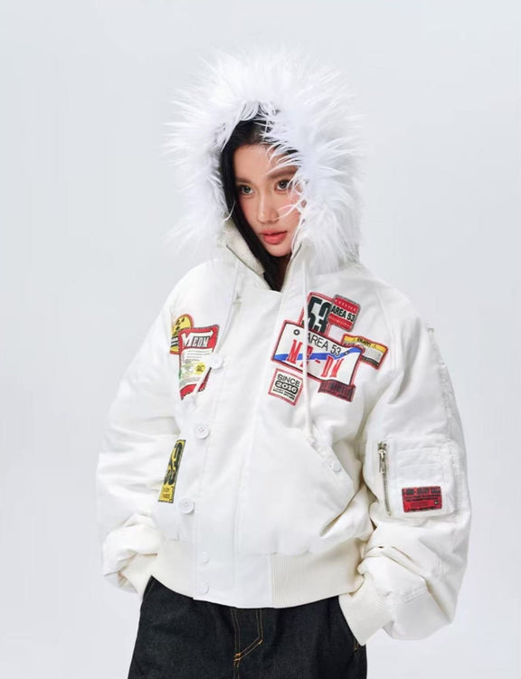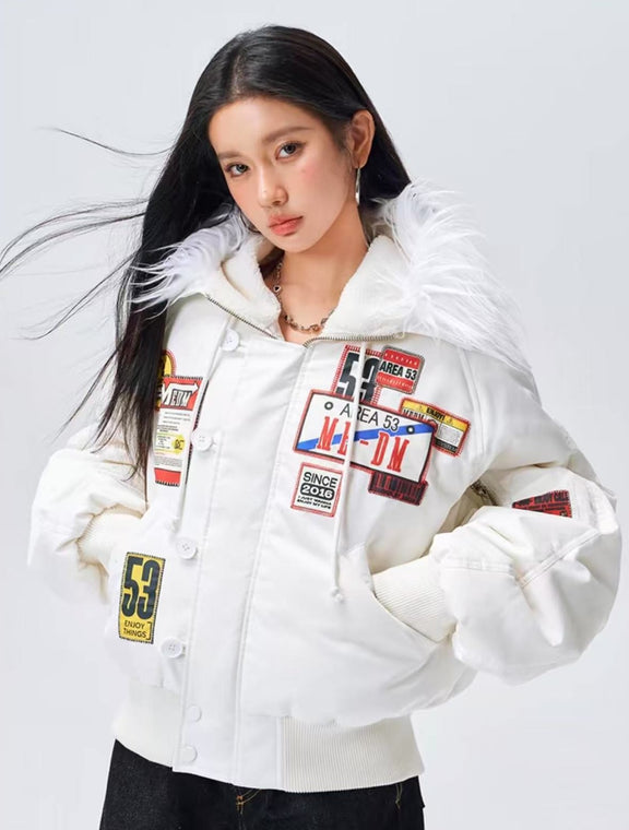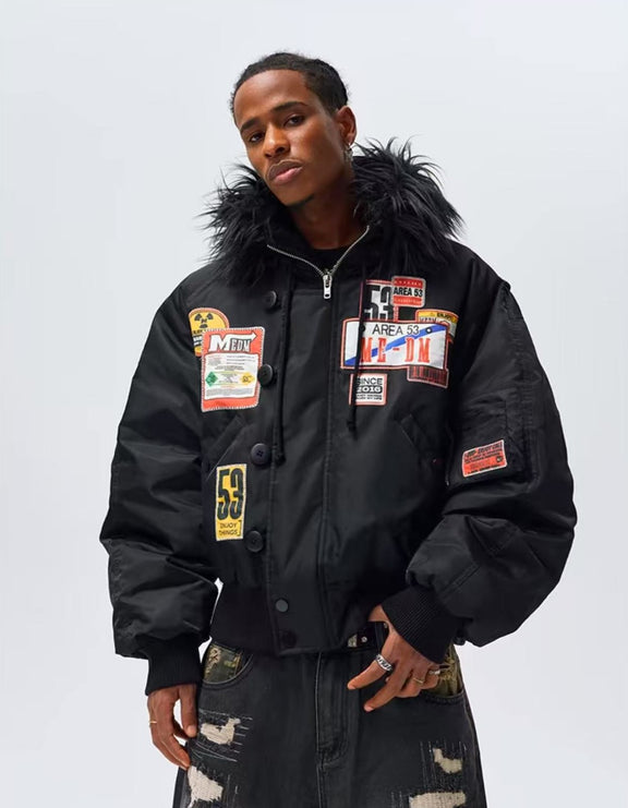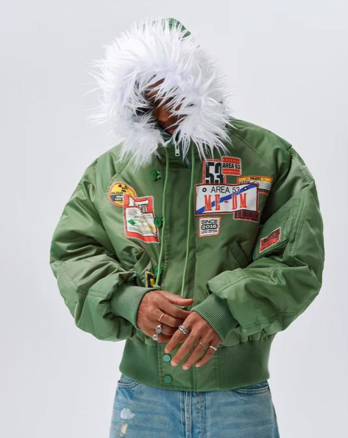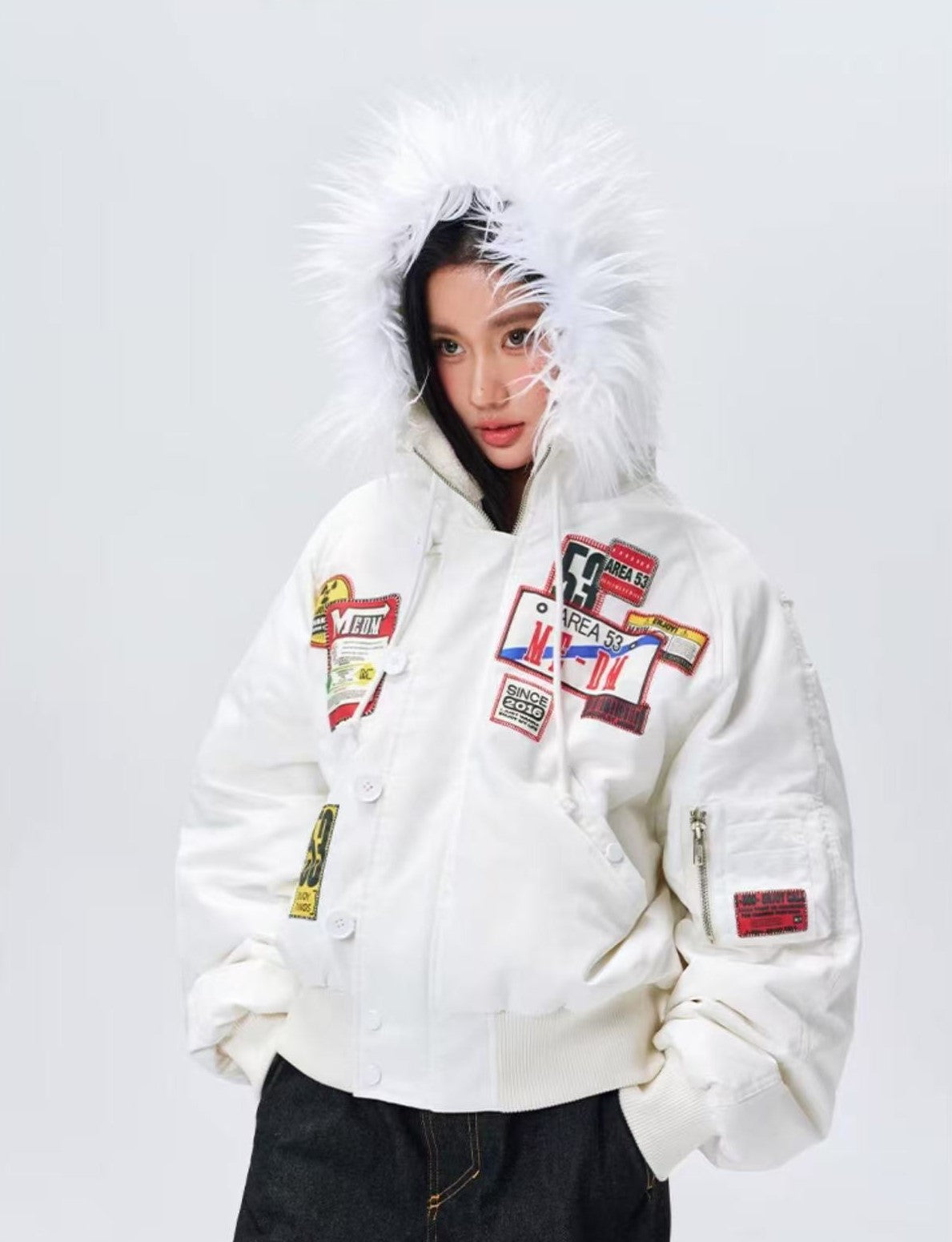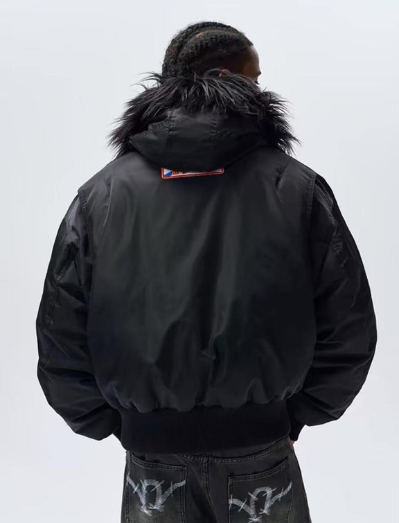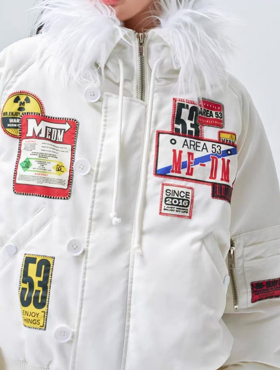MEDM MA1 Down Jacket with License Plate Patch and Fur Collar Hood