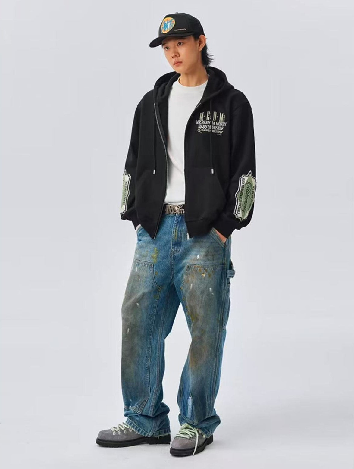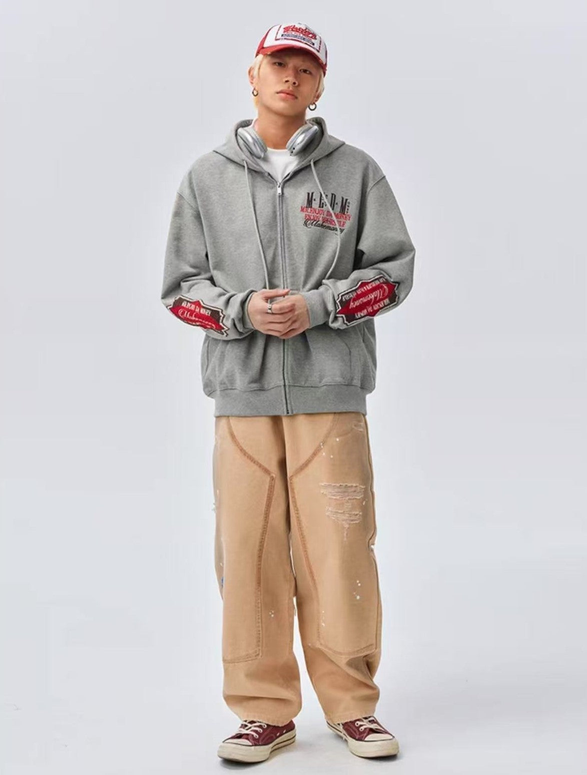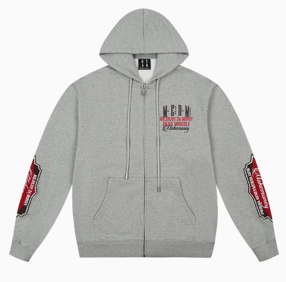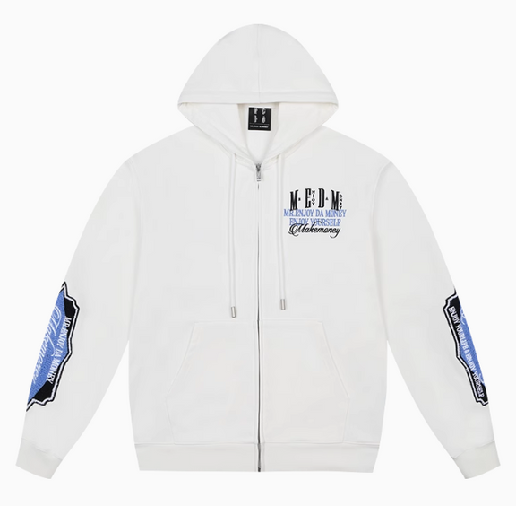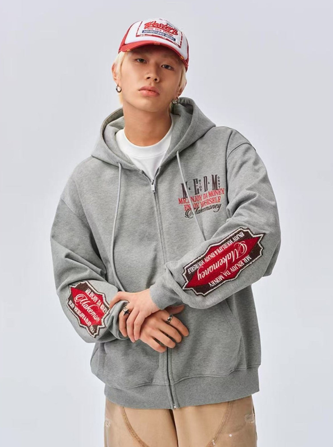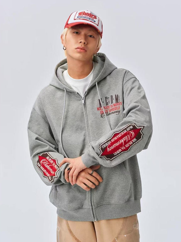 MEDM Retro Typography Embroidered Zipper Hoodie