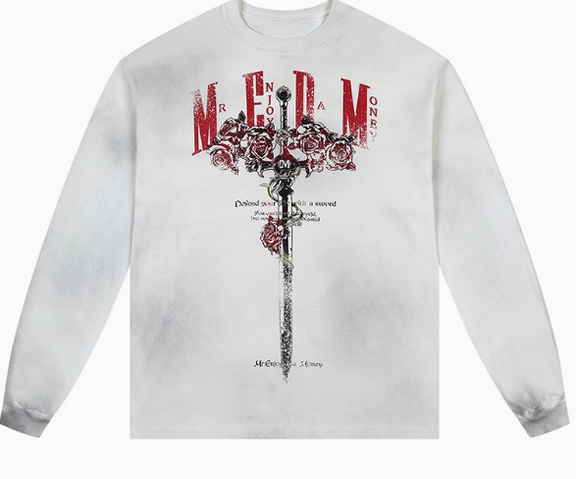 MEDM Rose and Sword Washed Long-sleeved T-shirt