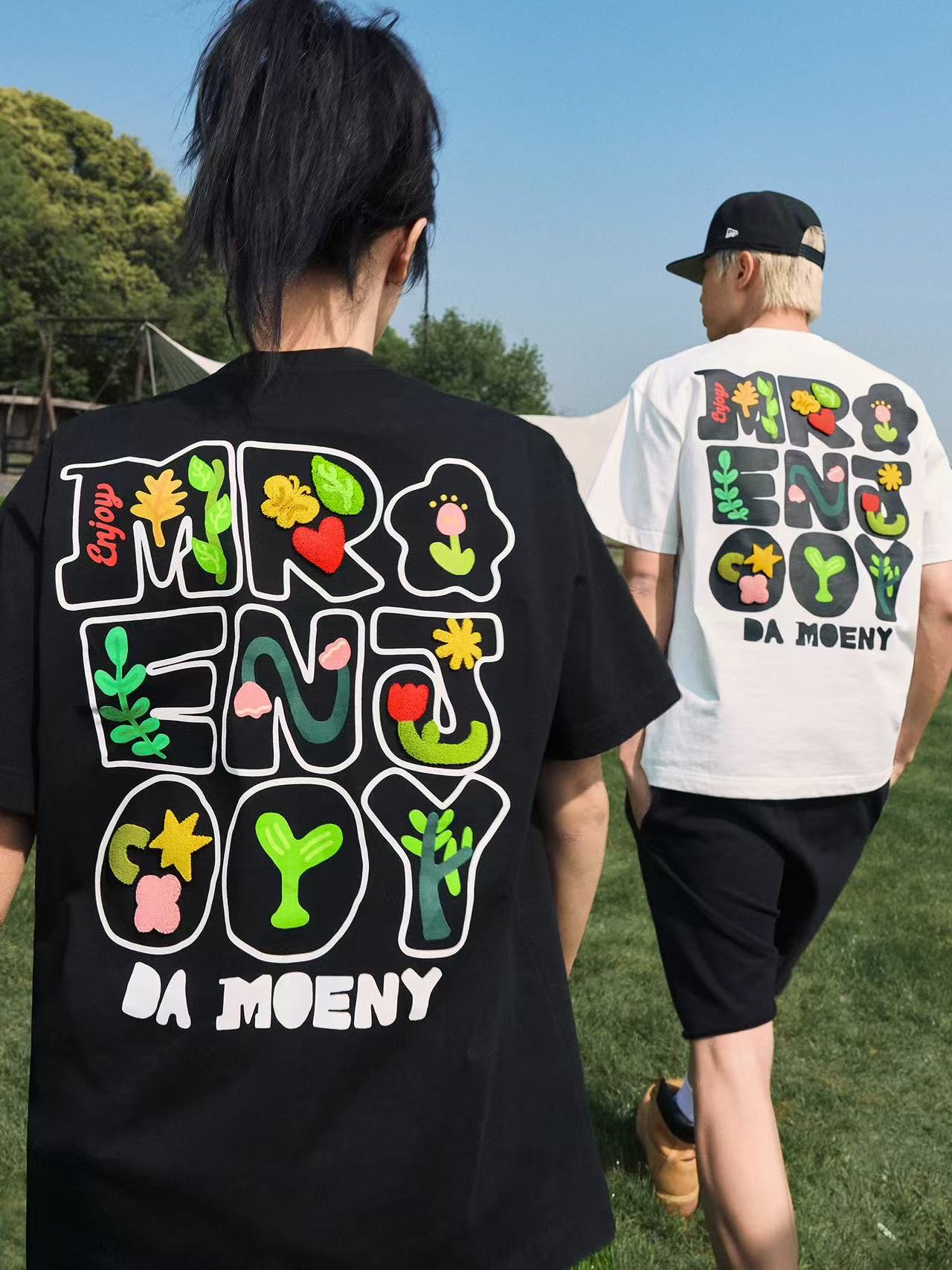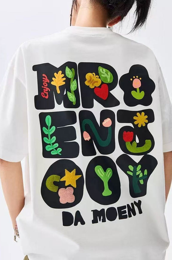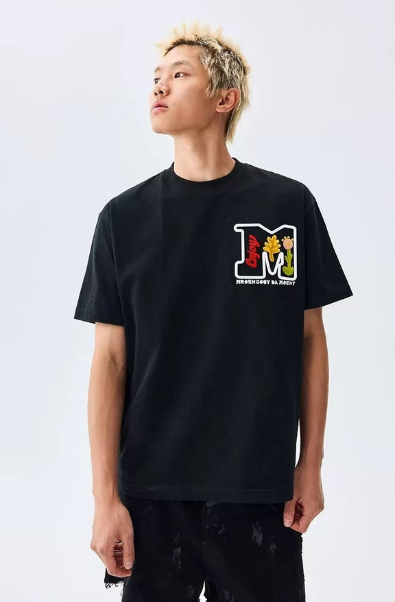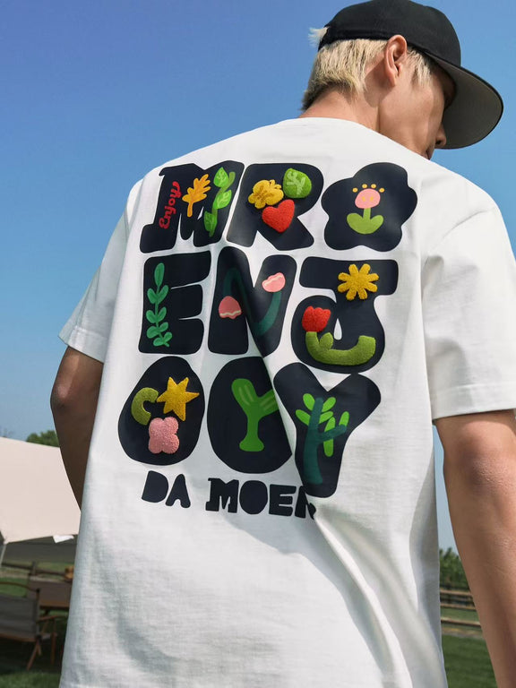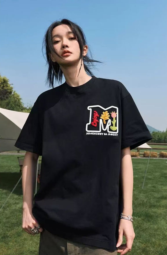 MEDM Toothbrush Embroidered Floral Short-sleeved T-shirt