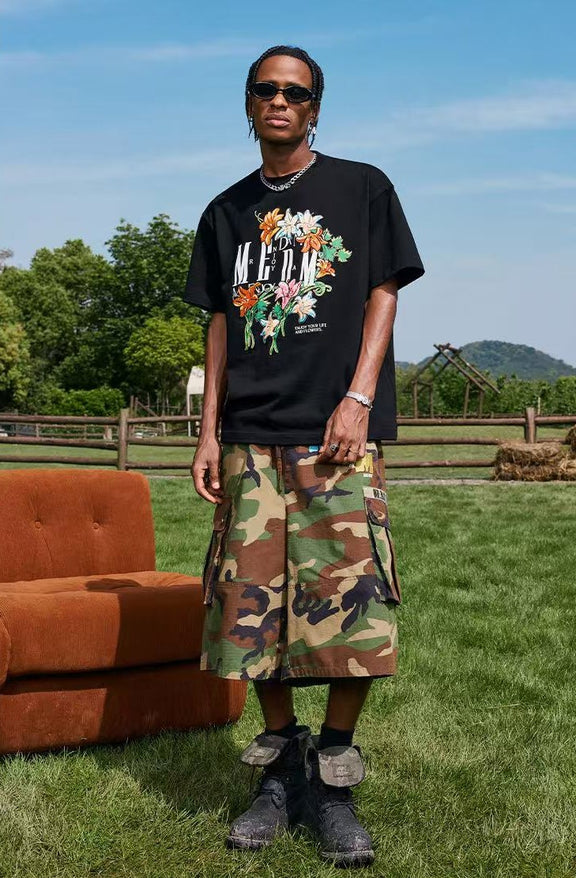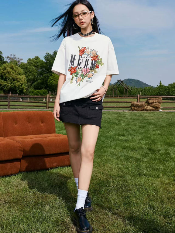 MEDM Twisted Floral Print Short-sleeved T-shirt