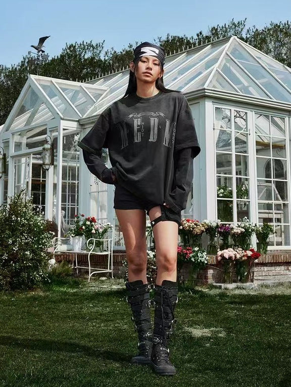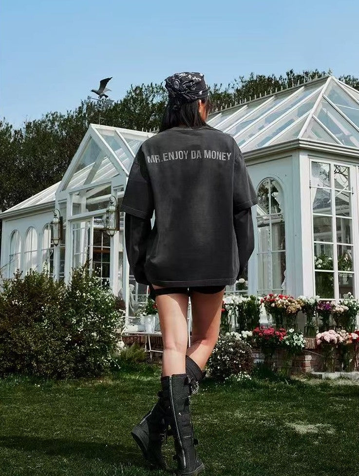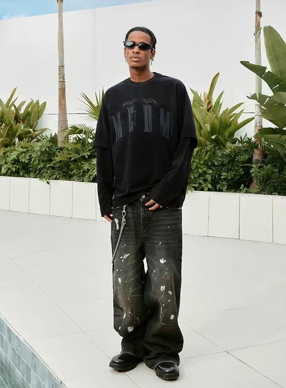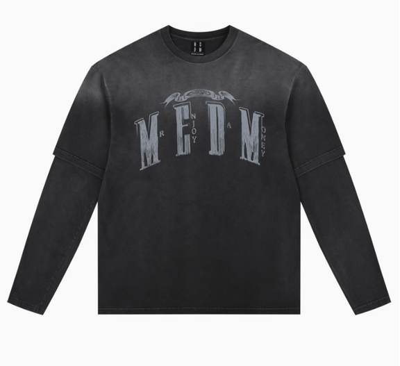 MEDM Washed Distressed Two-piece Long-sleeved T-shirt