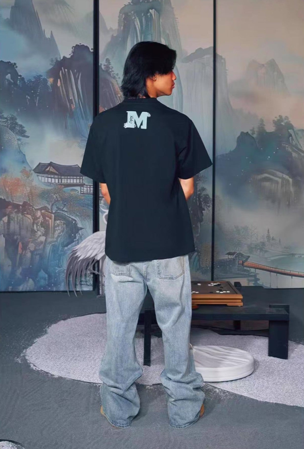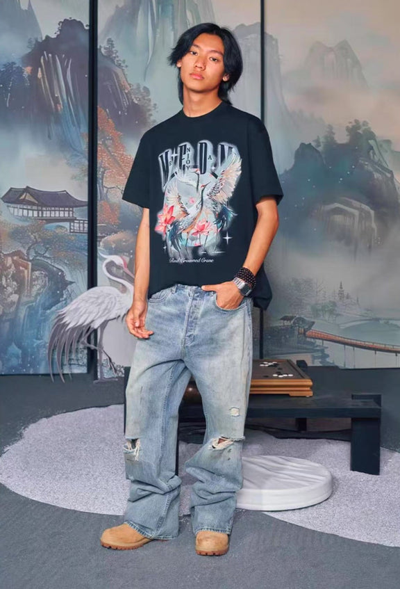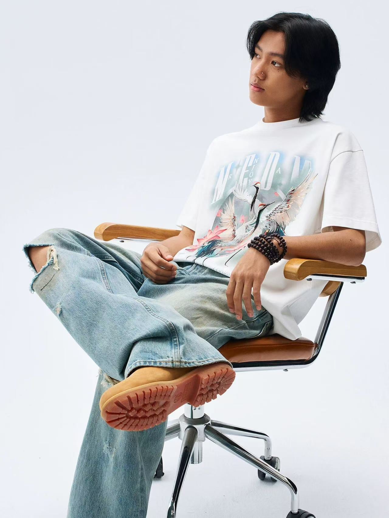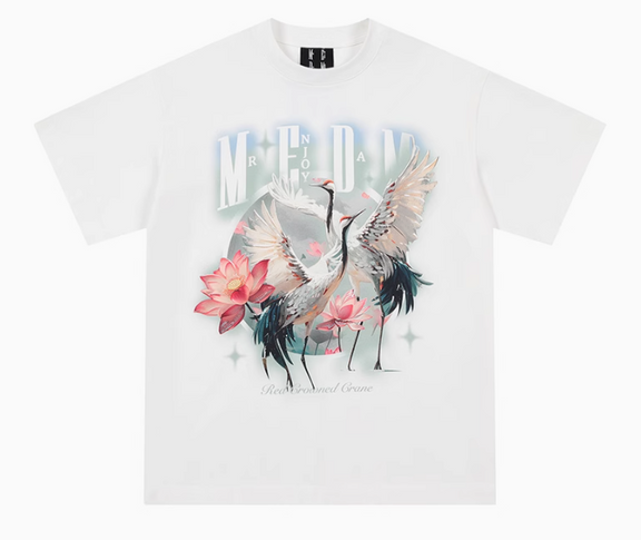 MEDM White Ink Crane Printed Short-sleeve T-shirt