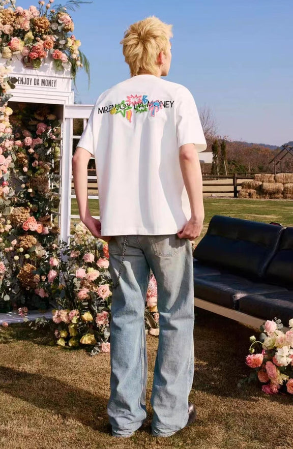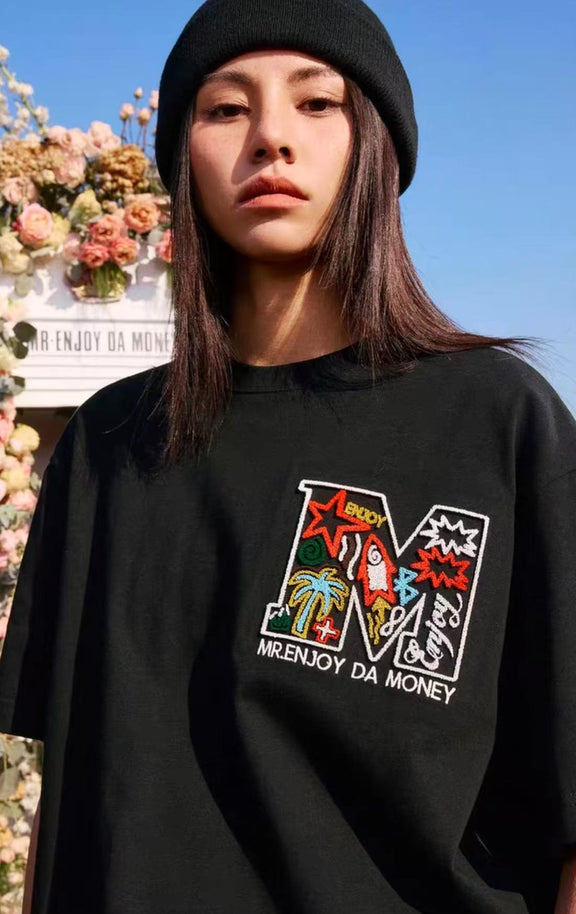 MEDM Coconut Tree Star Embroidered M Logo Summer Short-sleeved T-shirt