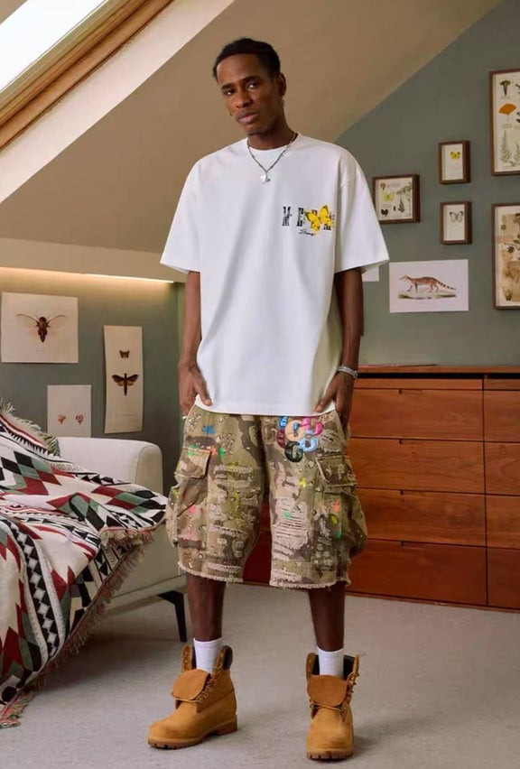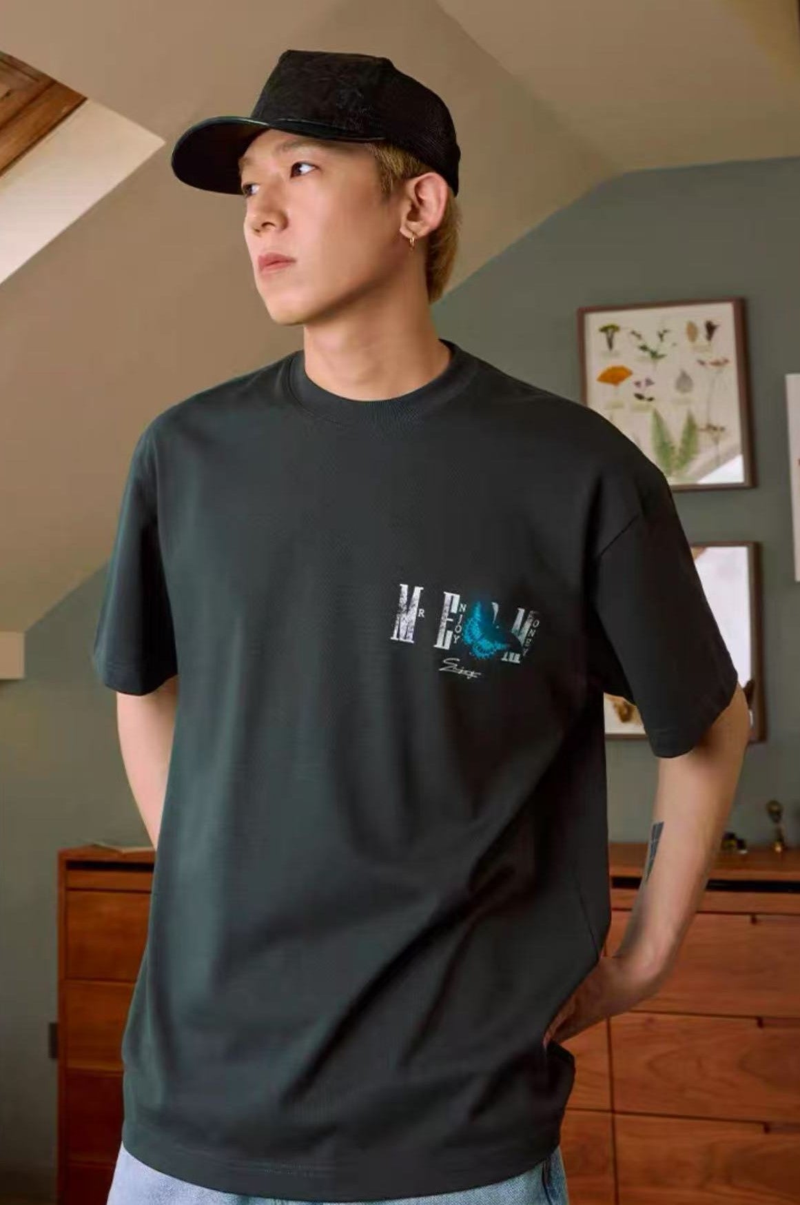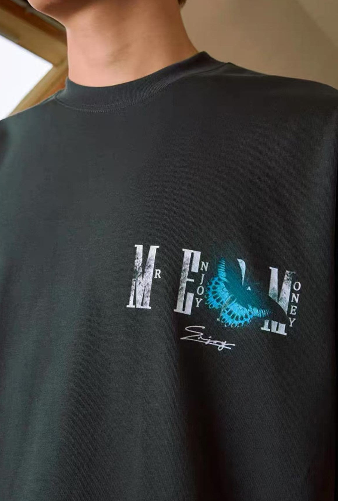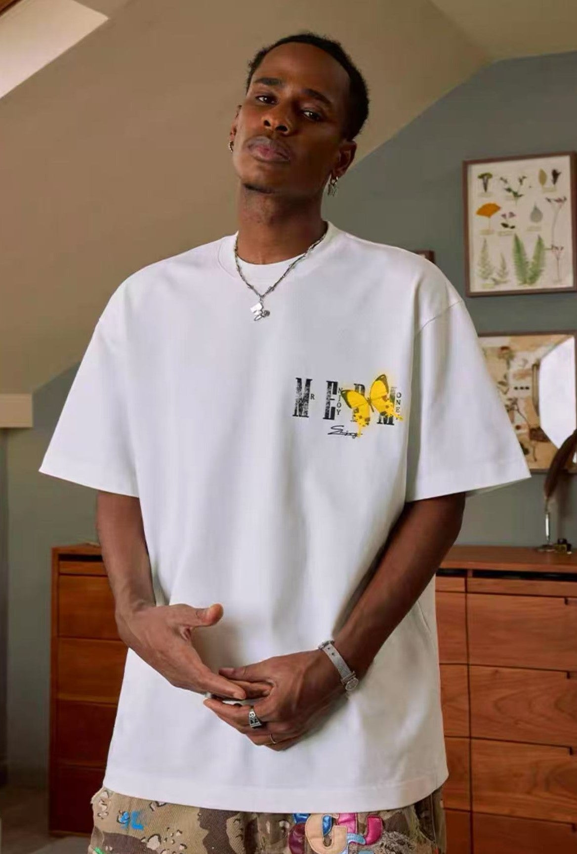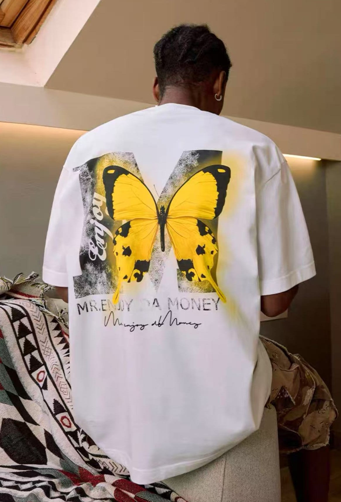 MEDM Luminous Butterfly Thermoset Oil Print Short Sleeve T-Shirt