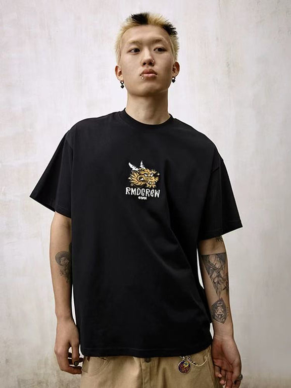 REMEDY Cartoon Dragon Print Short-sleeve T-shirt