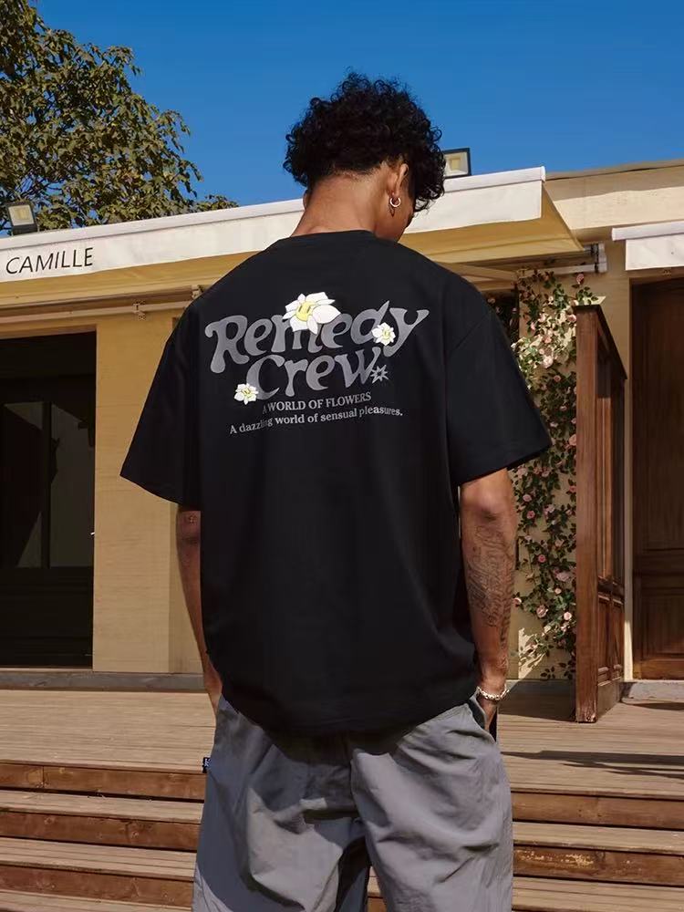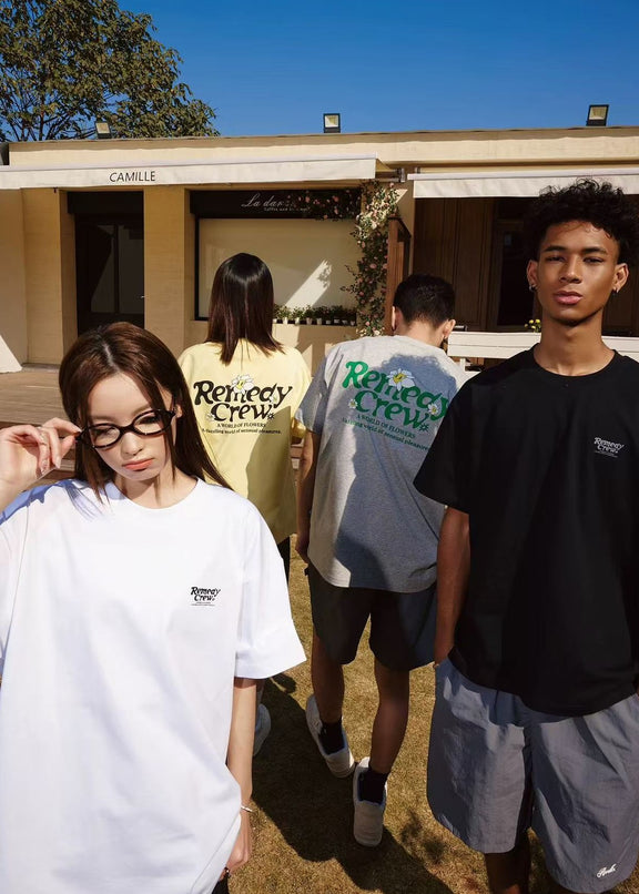 REMEDY Cartoon Floral Print Short-sleeve T-shirt