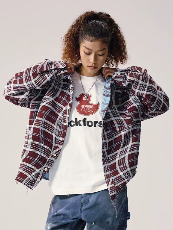 REMEDY Double-sided Plaid Pattern Long-sleeve Shirt