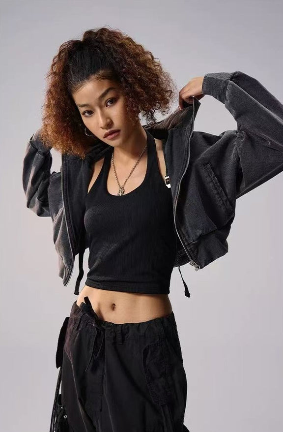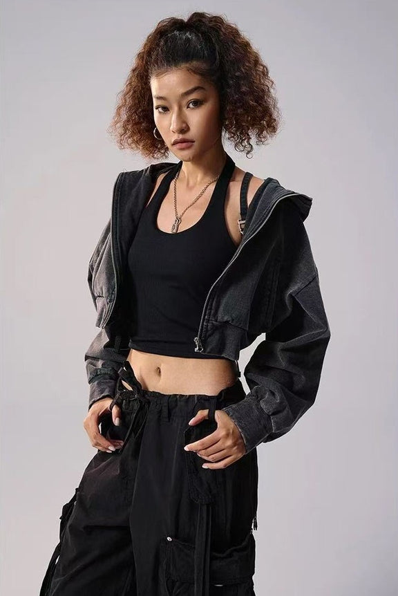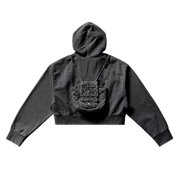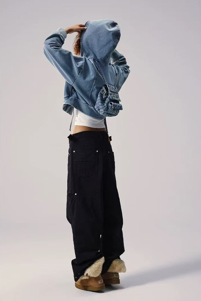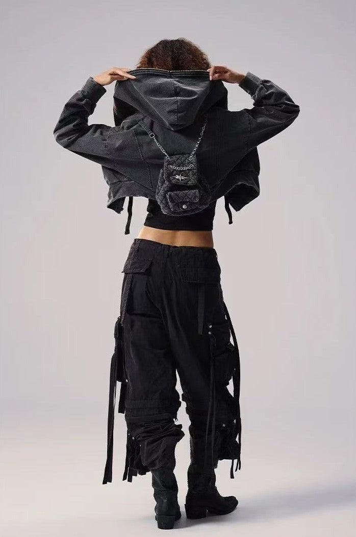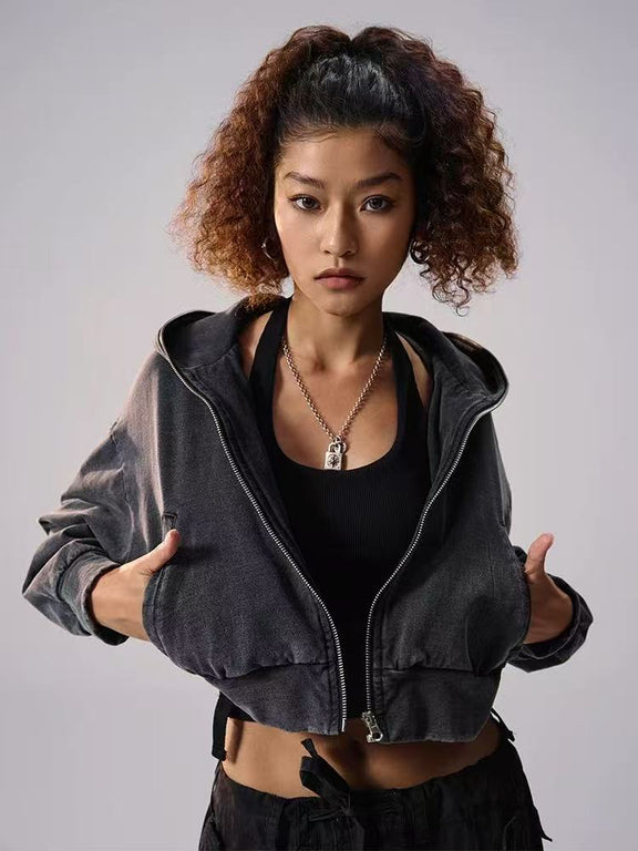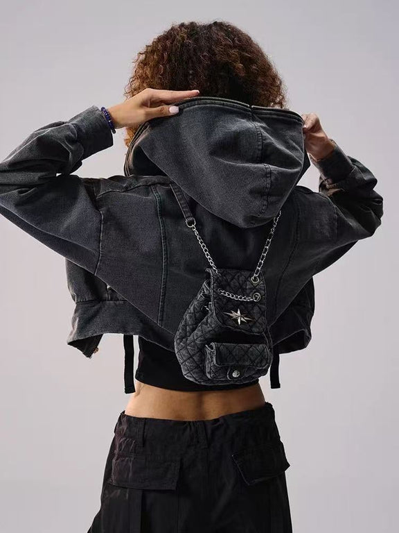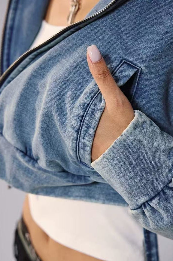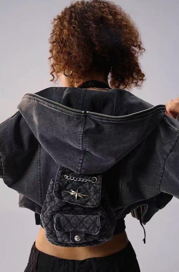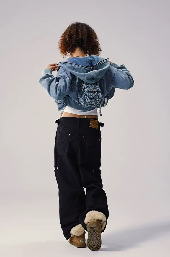 REMEDY Retro Distressed Washed Denim Backpack Hooded Jacket (For Women)