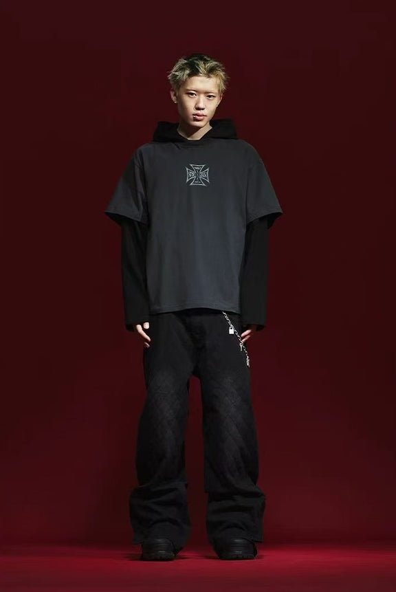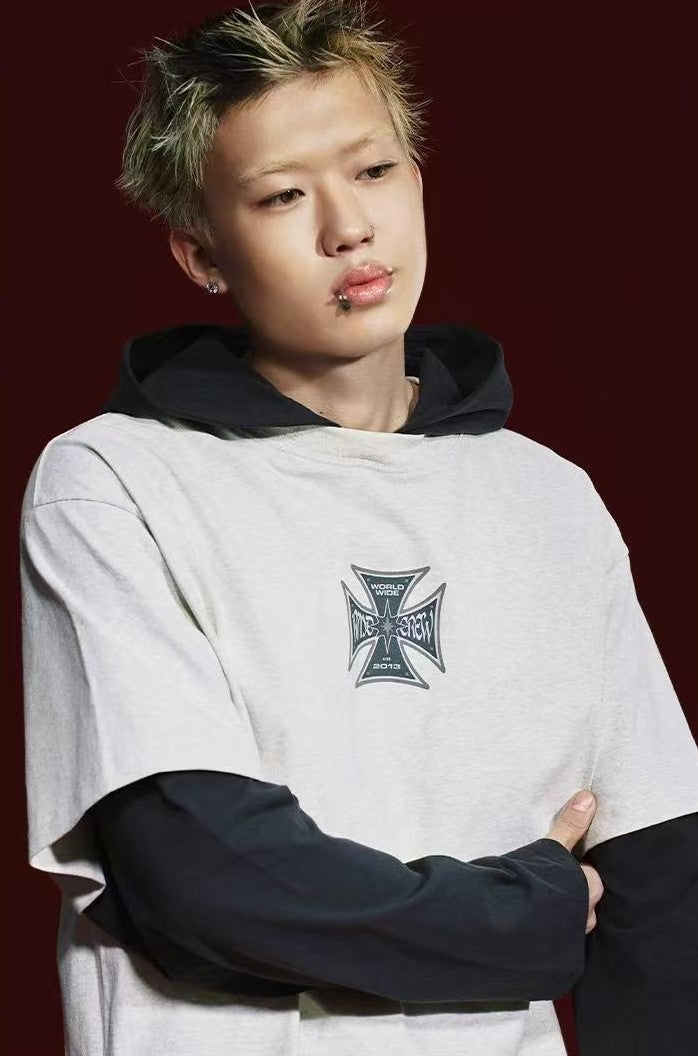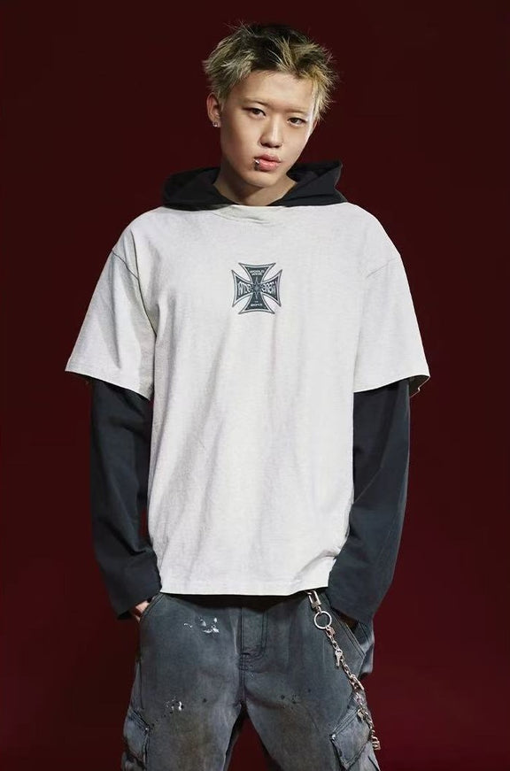 REMEDY Retro Fake Two-piece Hooded Long-sleeved T-shirt