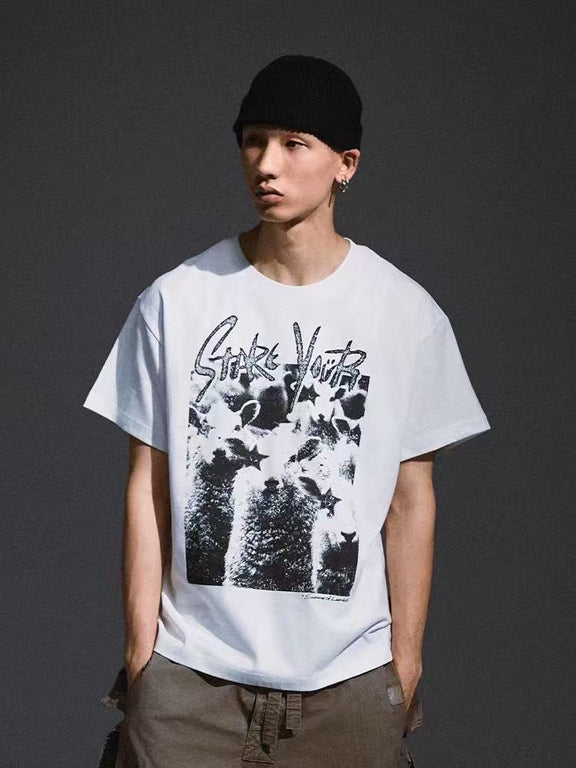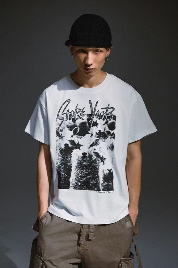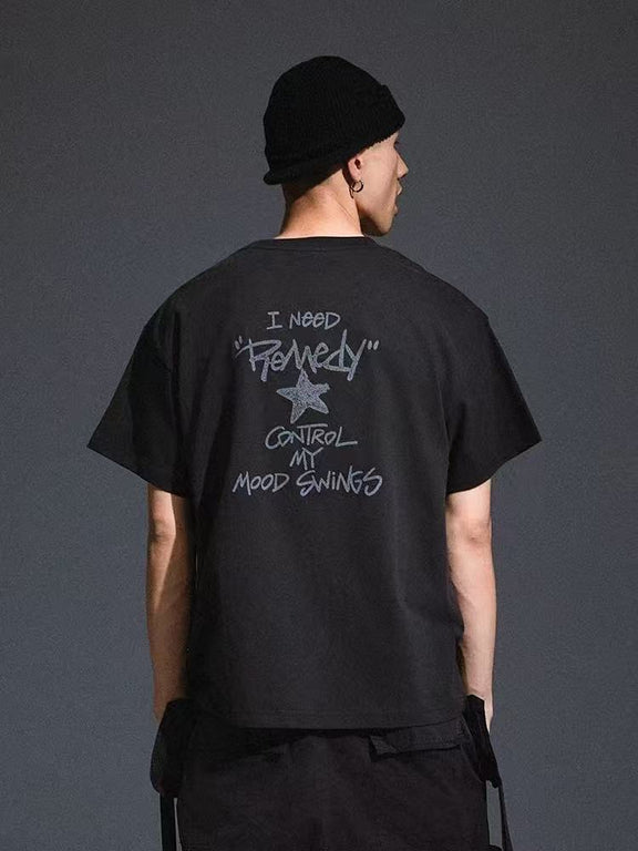 REMEDY Washed Distressed printing Short-sleeve T-shirt