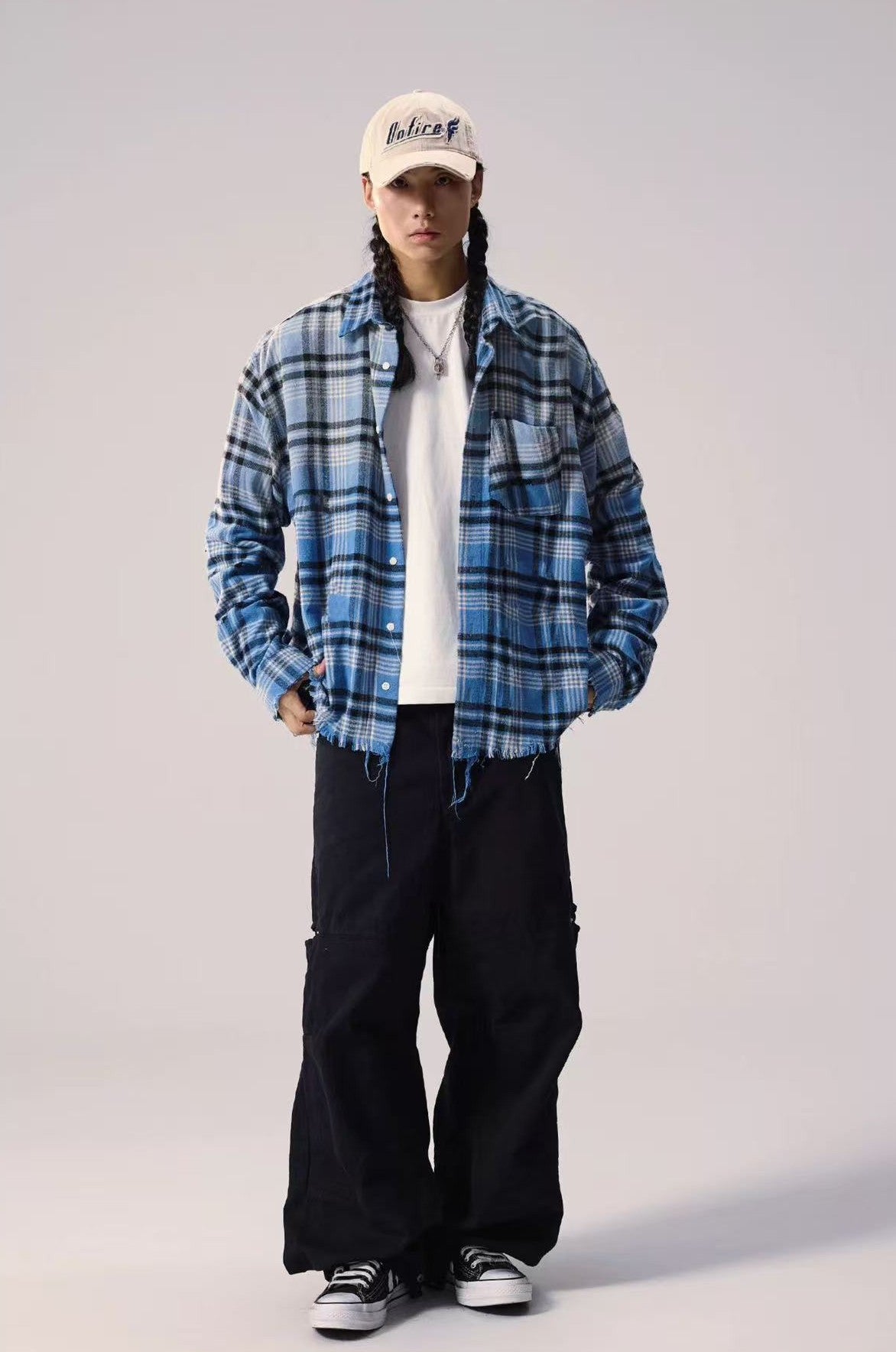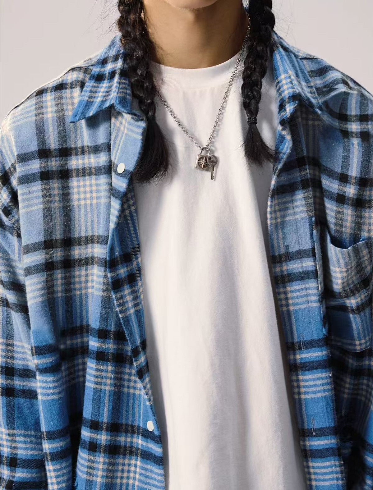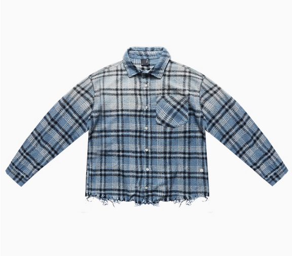 REMEDY Washed Gradient Long-sleeved Plaid Shirt