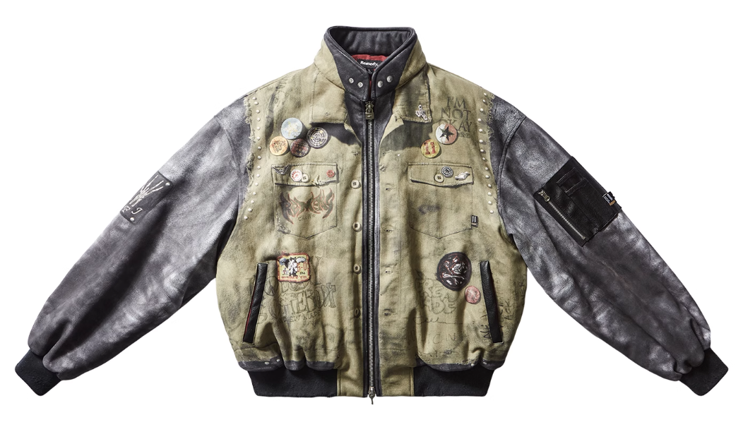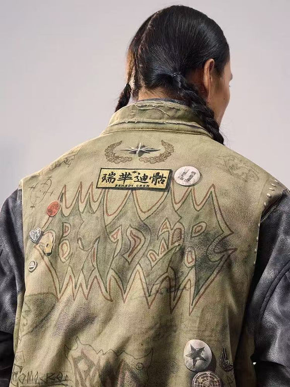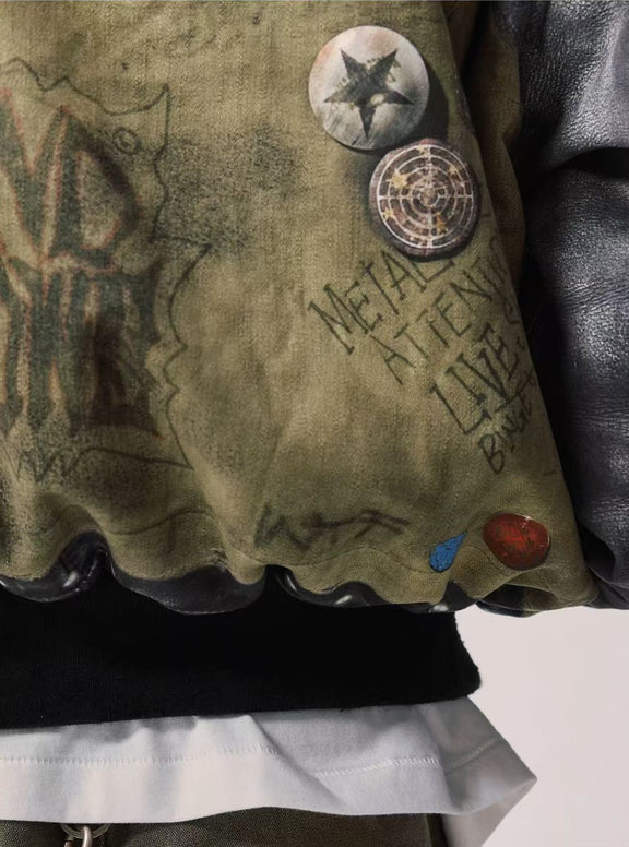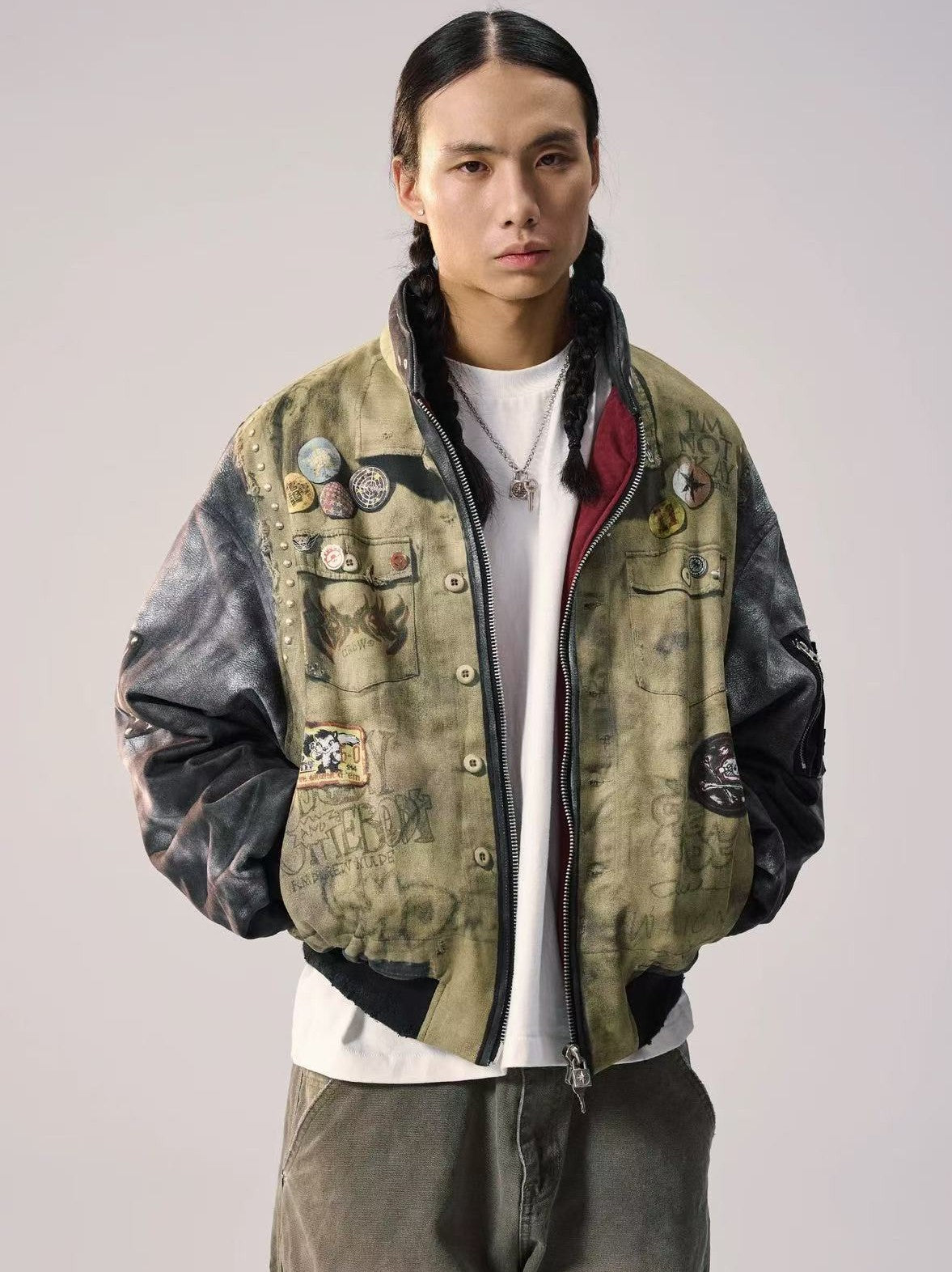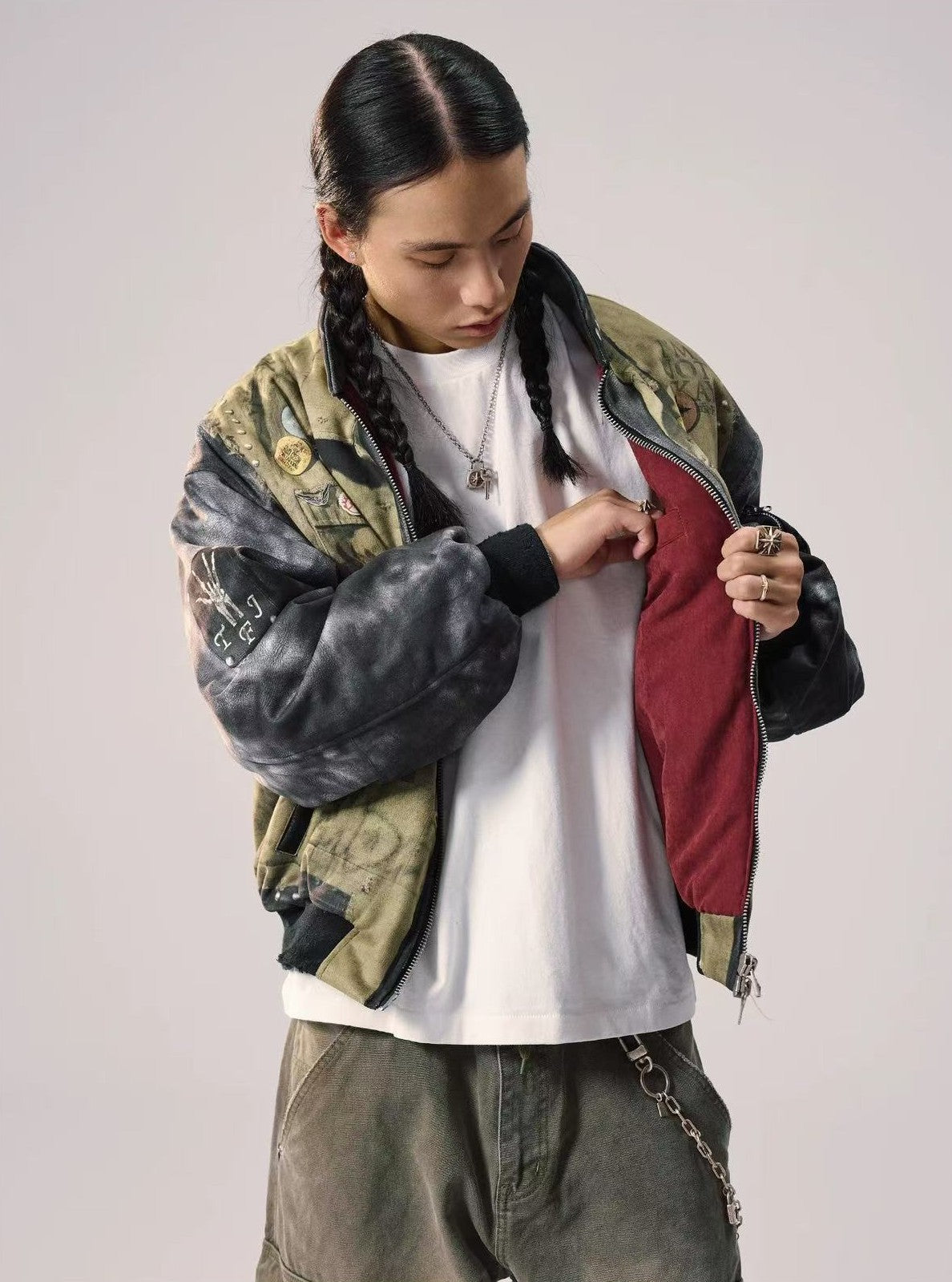 REMEDY Washed Printed Patchwork Bomber Jacket