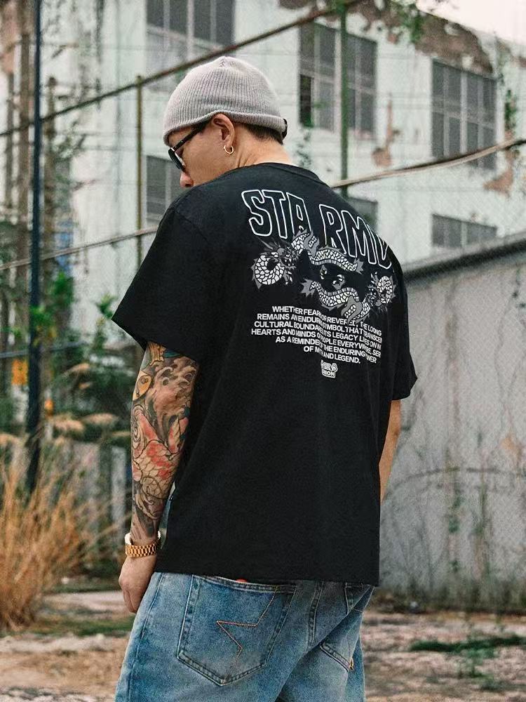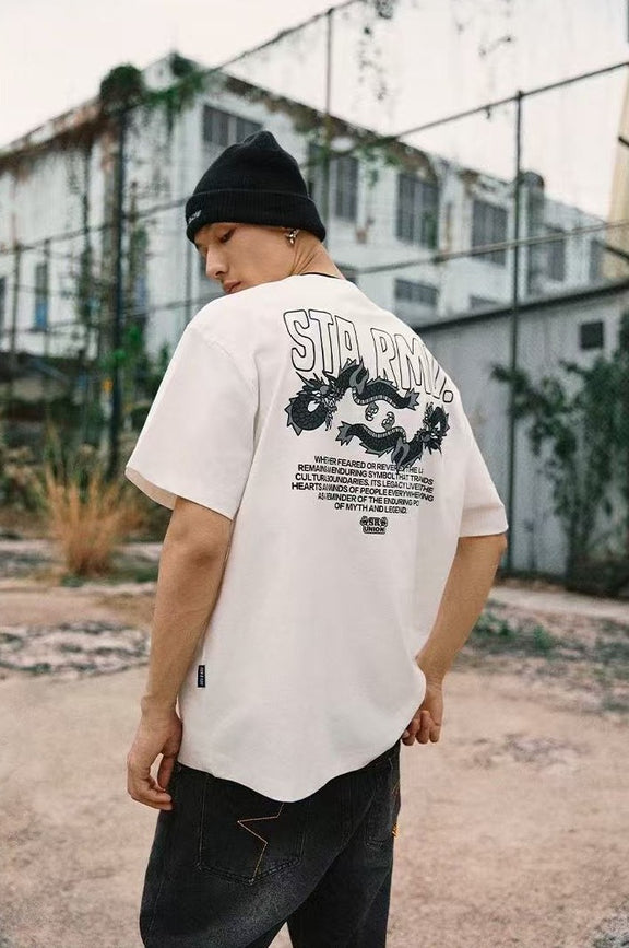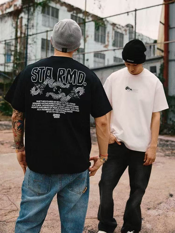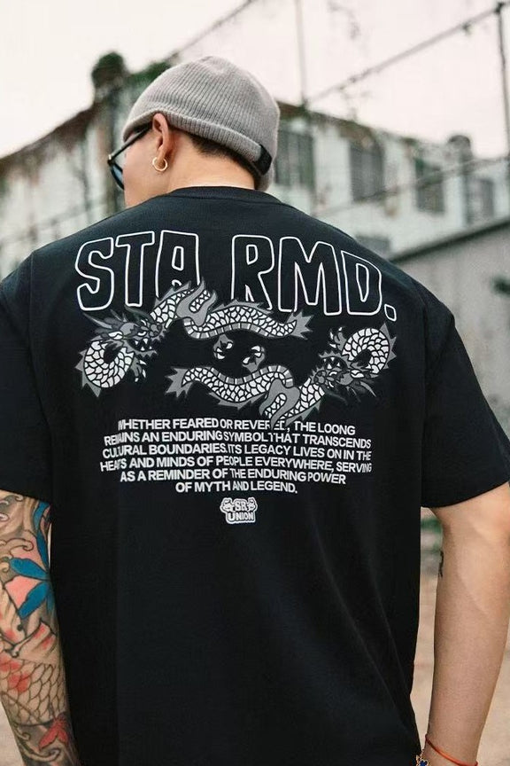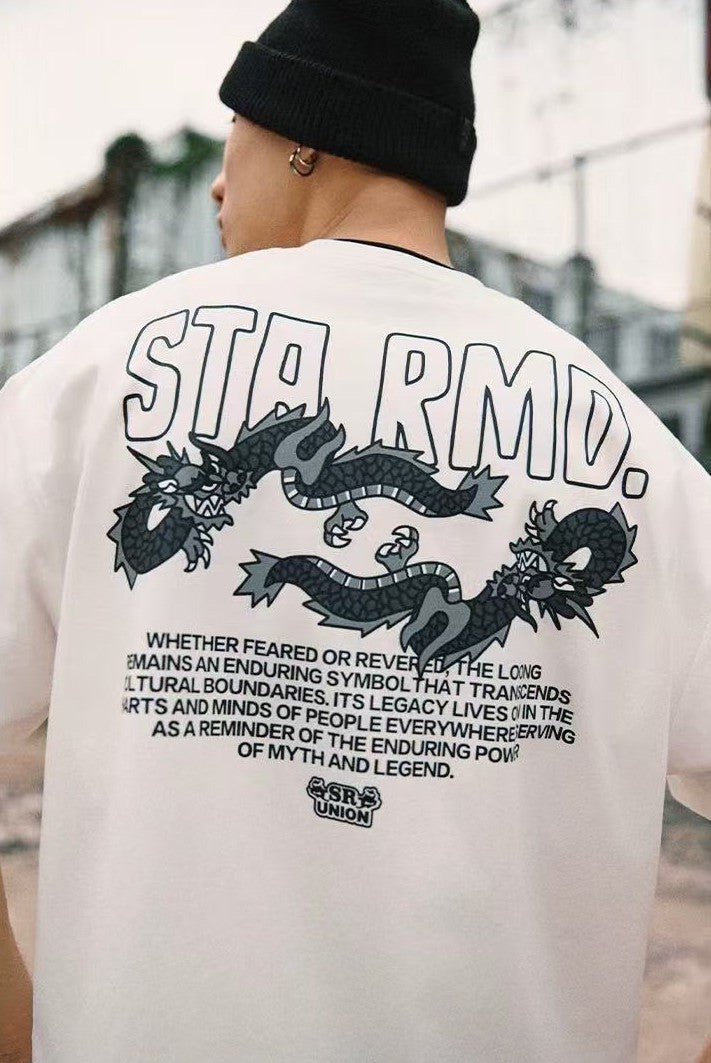 REMEDYxSTA Cartoon Dragon Print Short-sleeve T-shirt