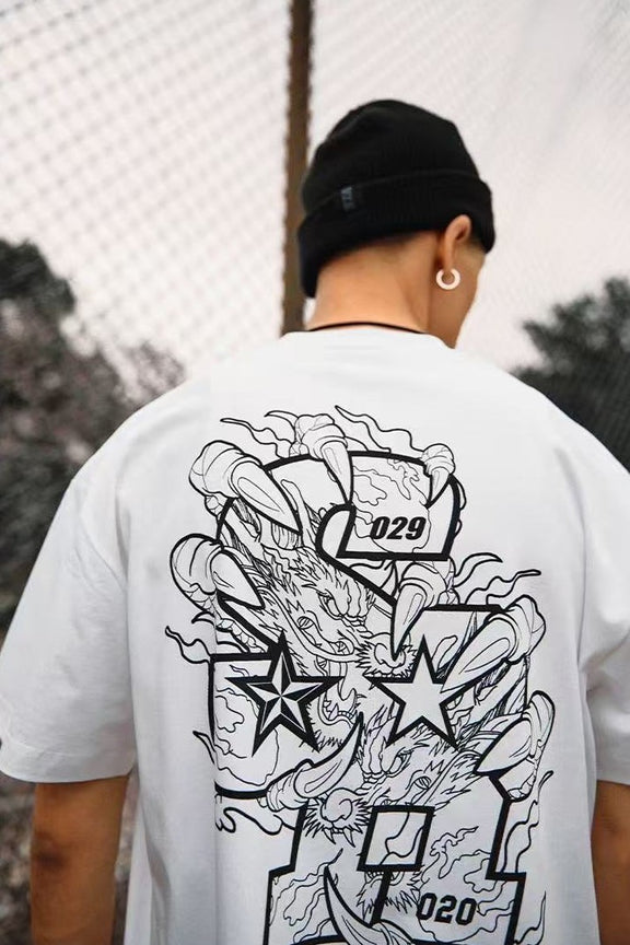 REMEDYxSTA Dragon Claws Letter Print Short-sleeve T-shirt